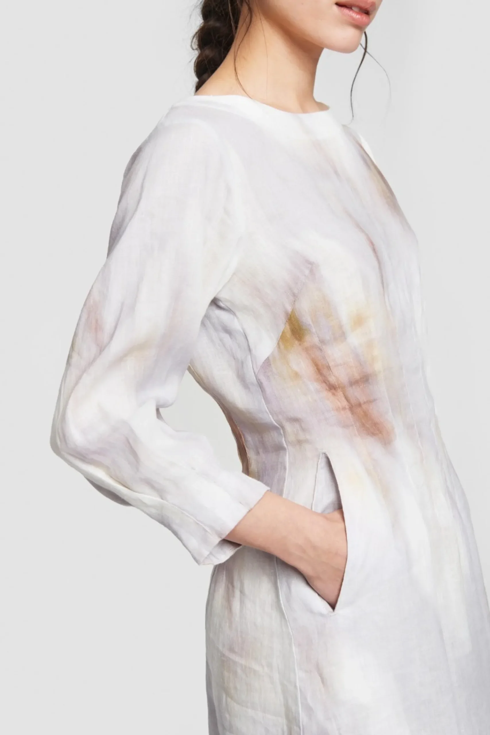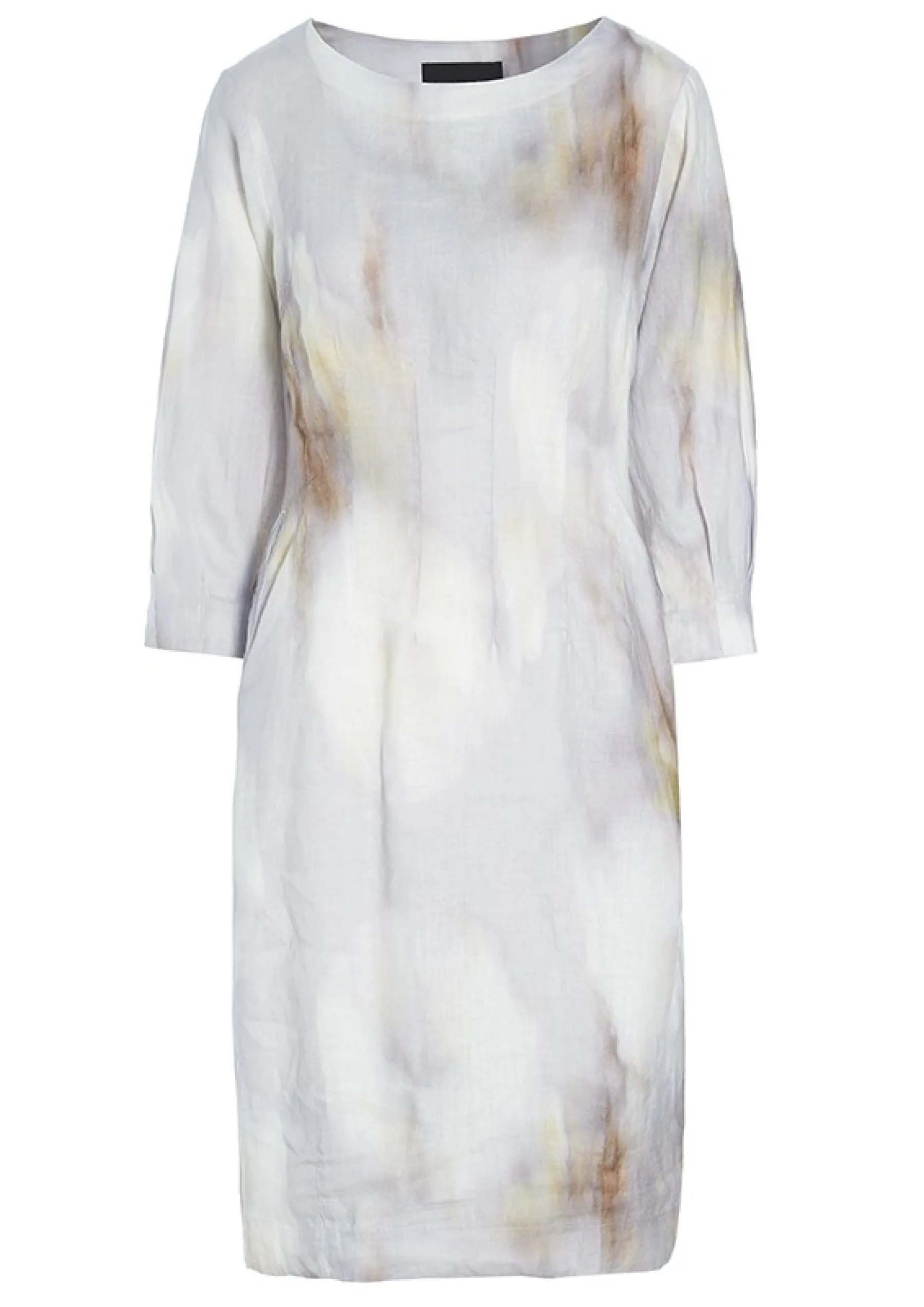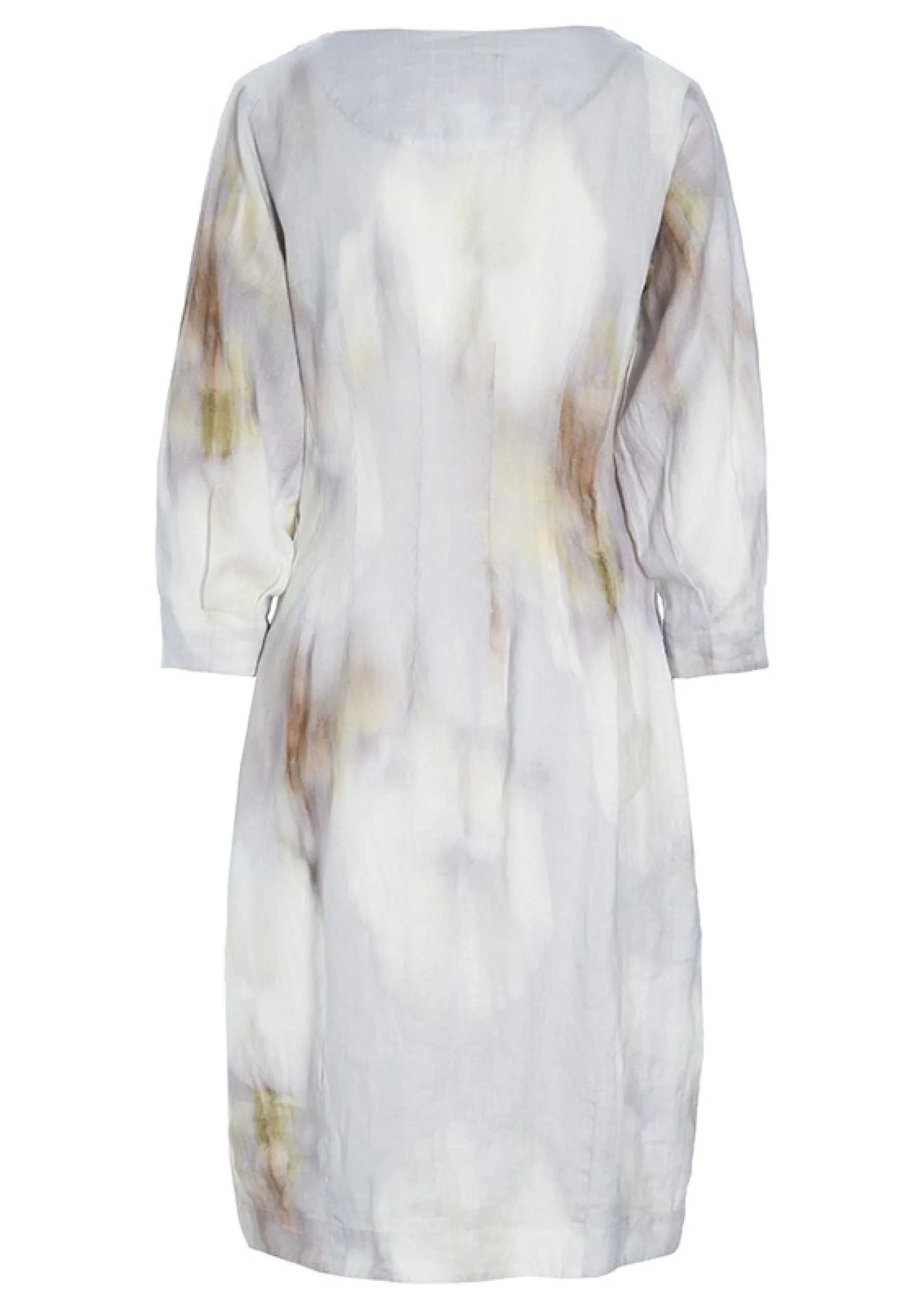 Kjole Med Drommende Douche Monster. Kjolen Er Taljeret Og Giver En Flot Og Feminin Silhouette. Det Er En Kjole, Som Er Oplagt At Bruge Til Hverdag, Blot Tilsat Bare Ben Og Sandaler. Kjolen Er Ogsa Fin Med Et Par Lose Bukser Under I En Matchende Nuance.