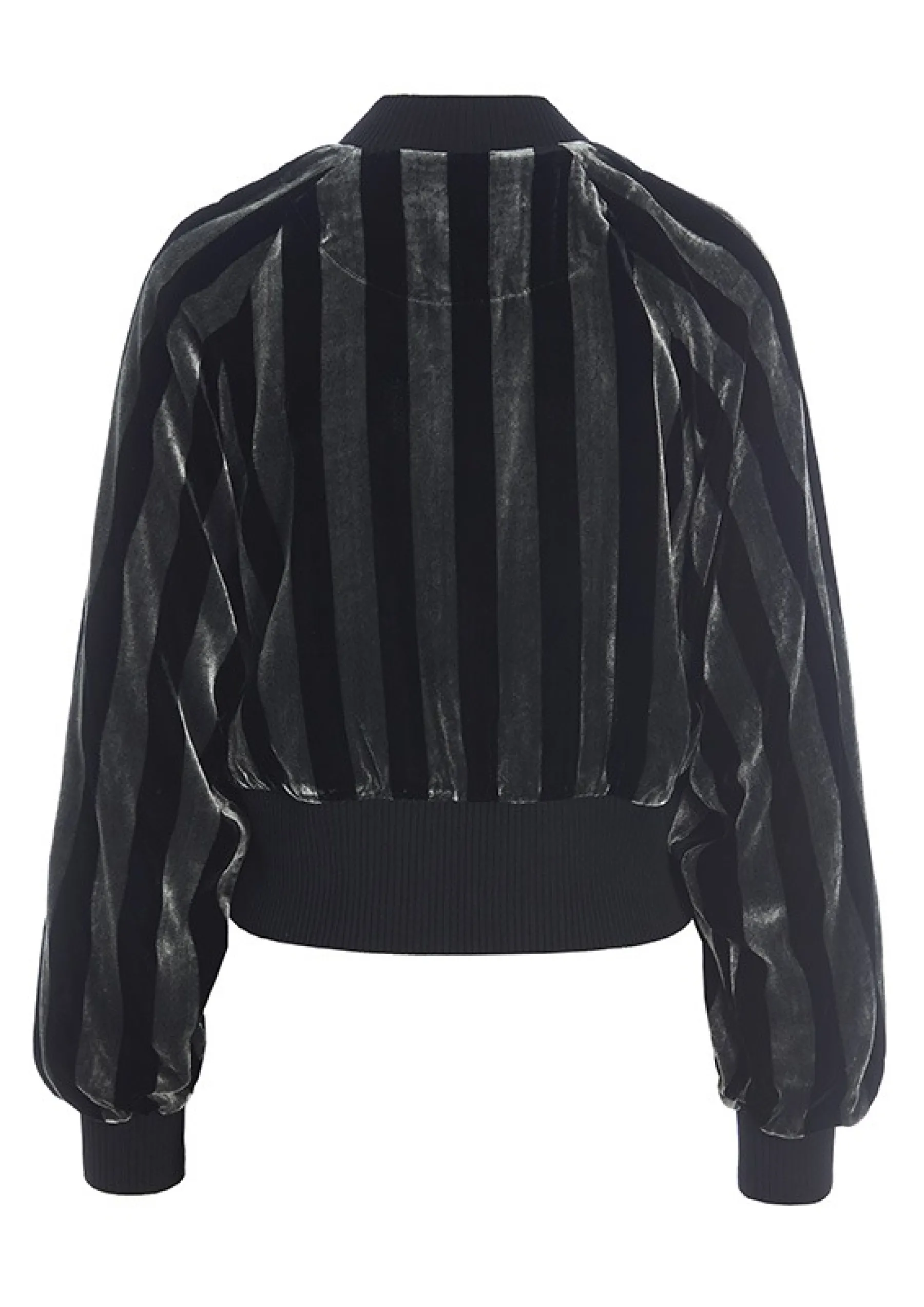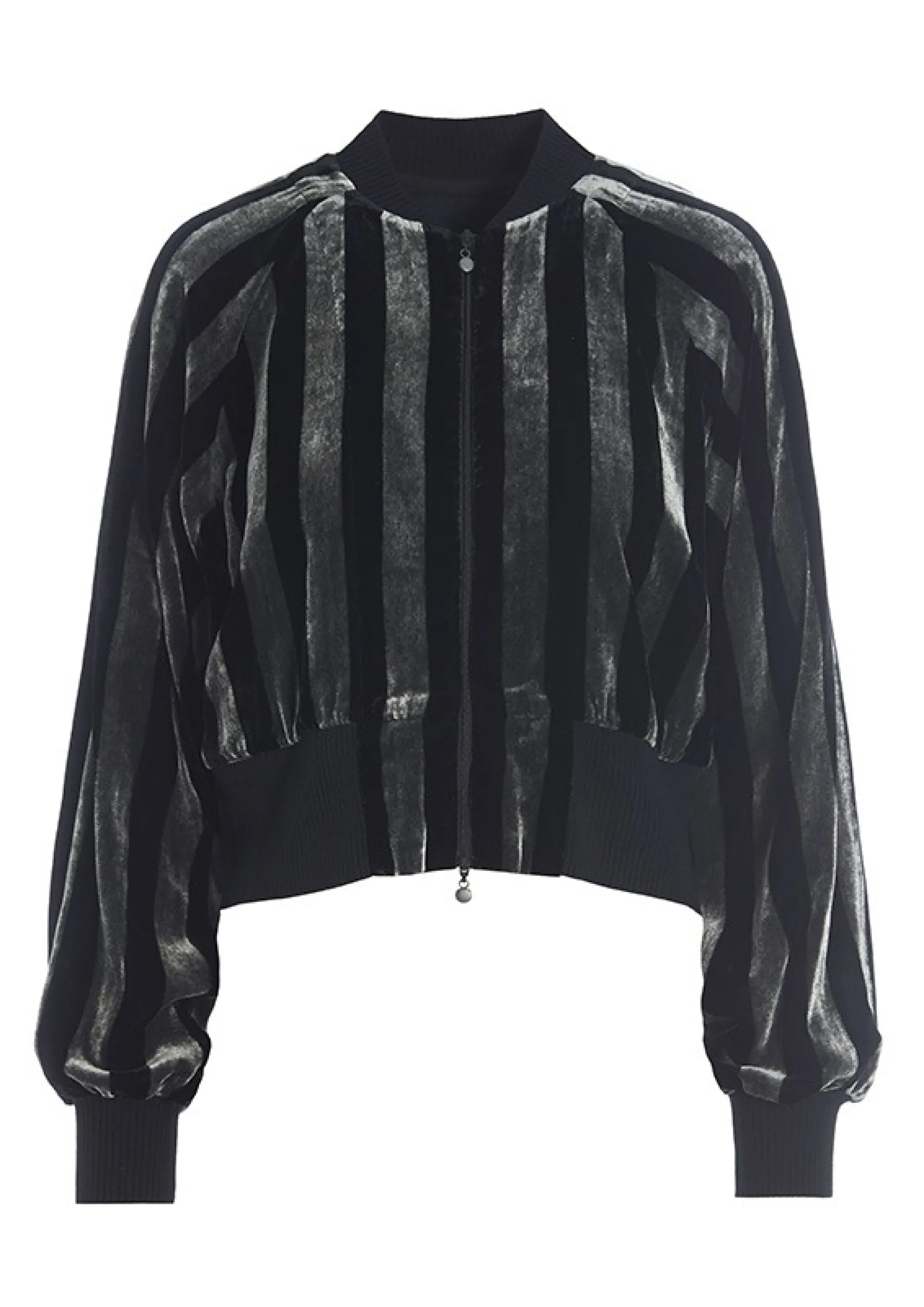 Cool Bomberjakke, Der Er Et Oplagt Alternativ Til En Blazer Eller Cardigan. Det Laekre Velour Giver Et Touch Af Luksus, Samtidig Med At Snittet Er Sporty Og Uhojtideligt. Brug Den Til Dine Jeans, Tag Den Udover Kjoler Eller Kombiner Den Med De Matchende Velvet Stripe Bukser.