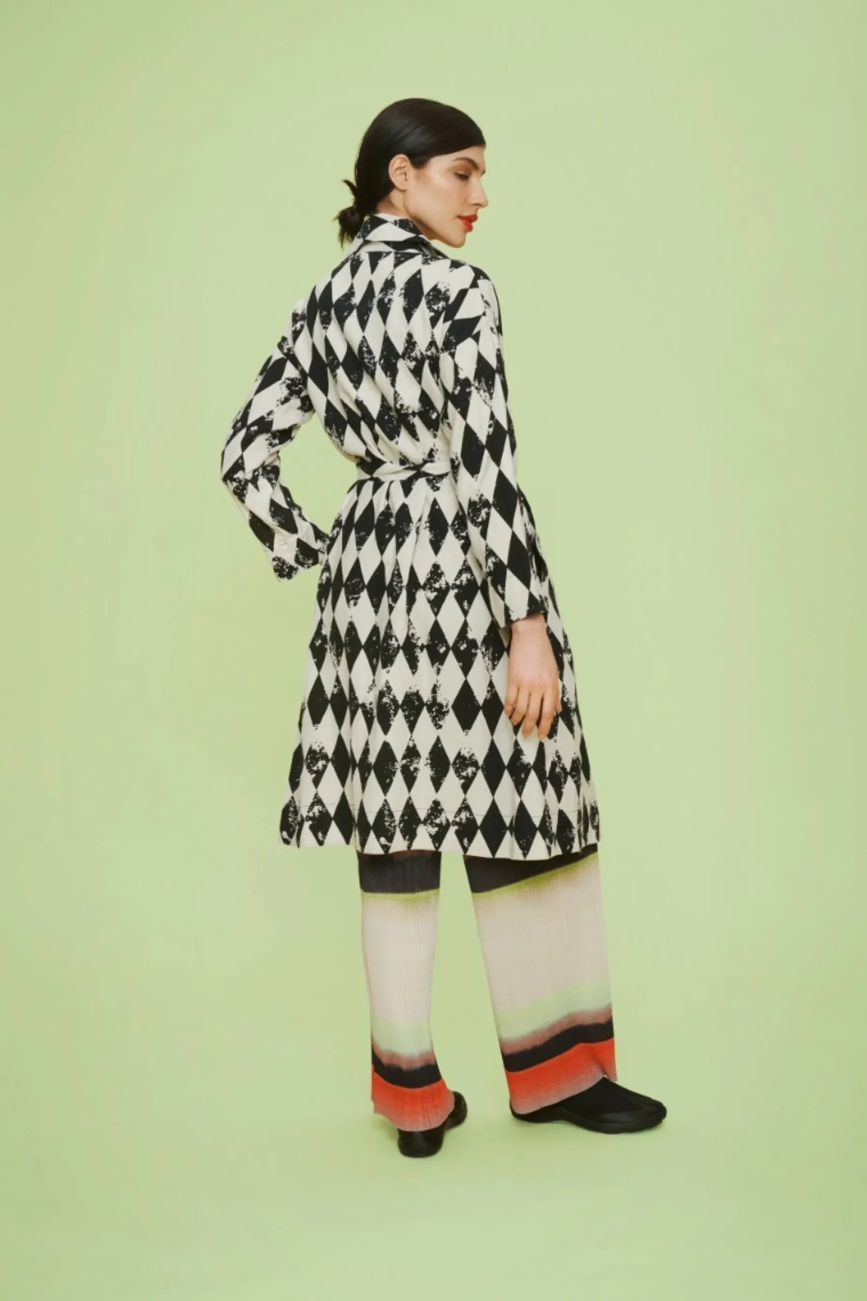 Meget Klaedelig Og Opsigtsvaekkende Jakke Med Et Effektfuldt Harlequin-Print. Jakkens Baelte Markerer Taljen Og Giver En Flot Silhuet. Brug Den Til At Give Et Ensfarvet Basissaet Karakter. Eller Saet Den Sammen Med Andre Print For Et Personligt Monstermiks.