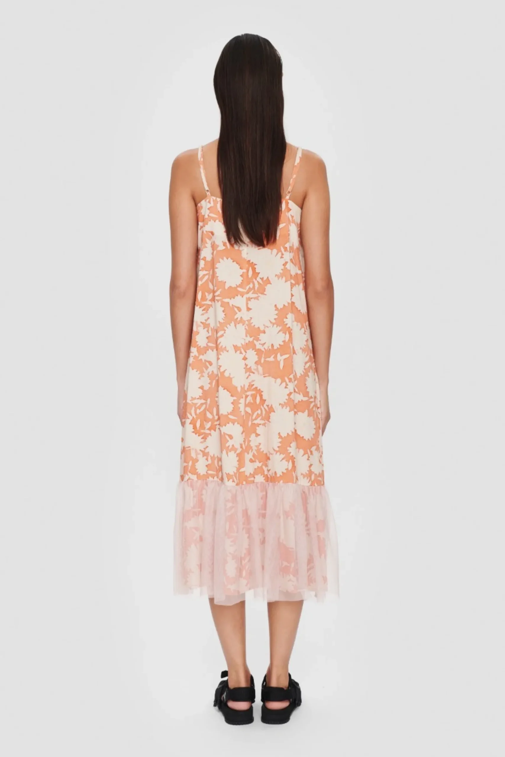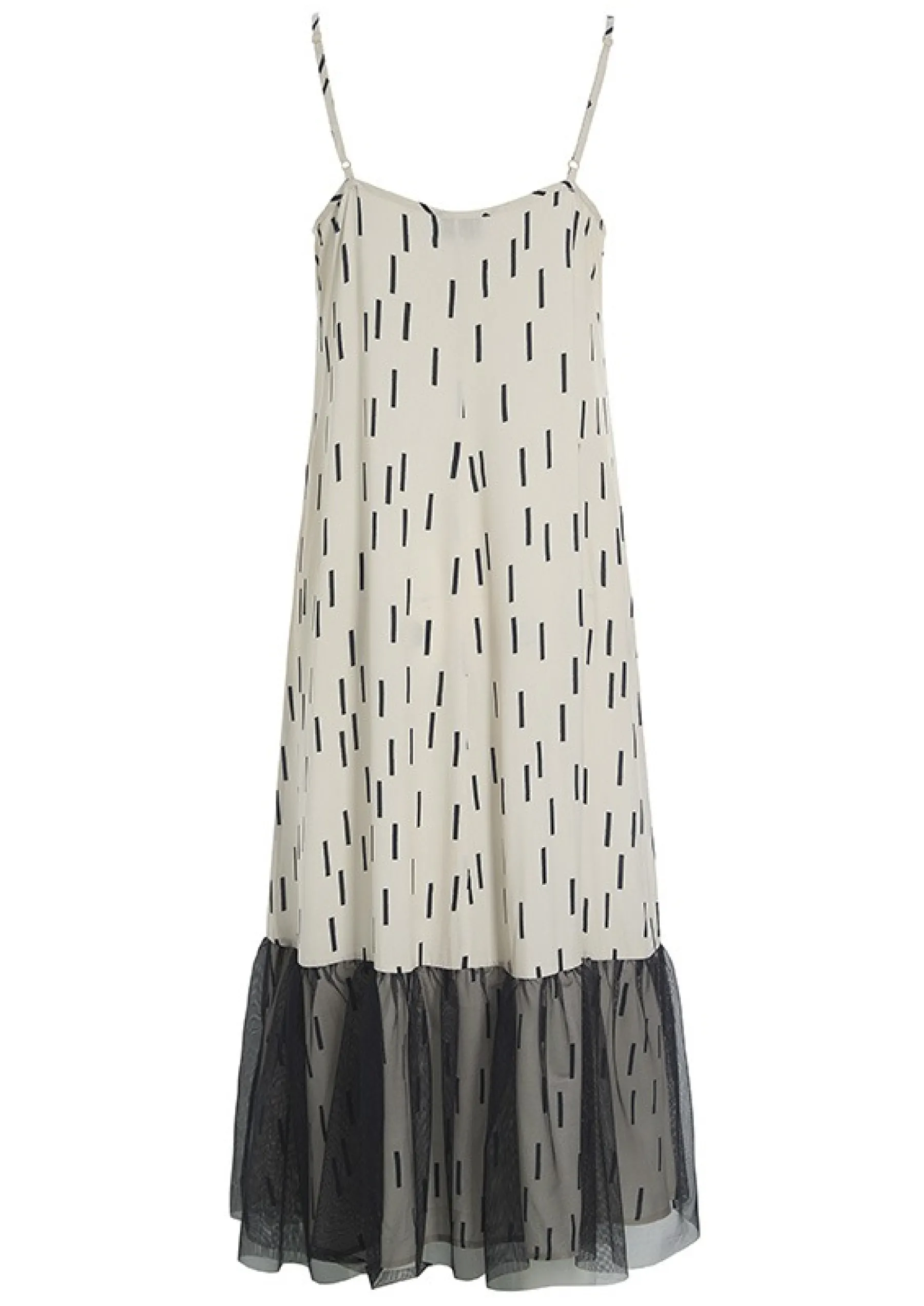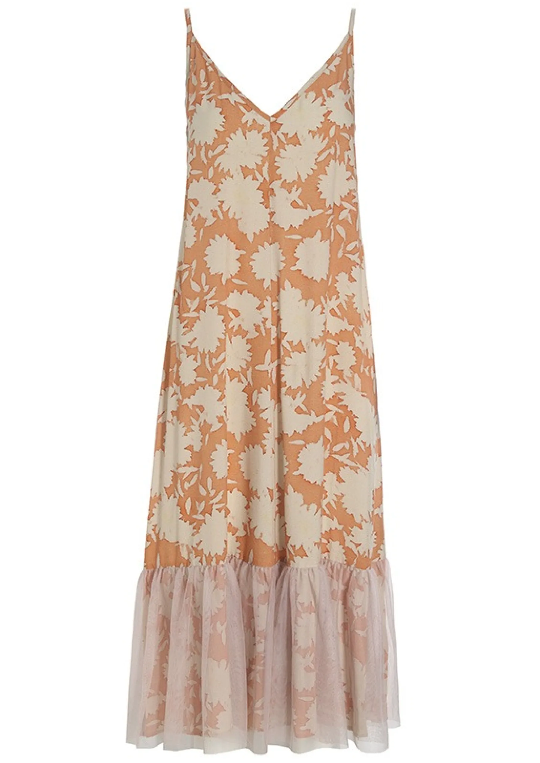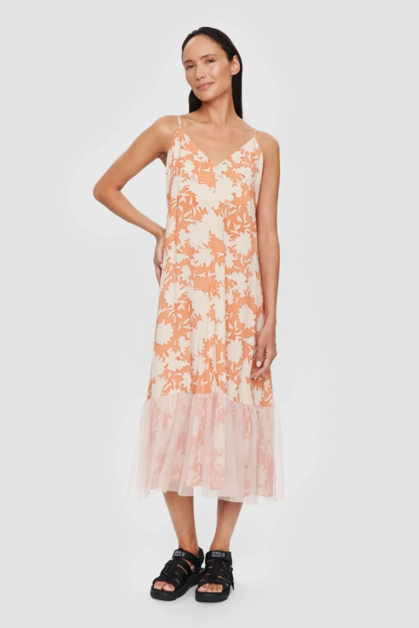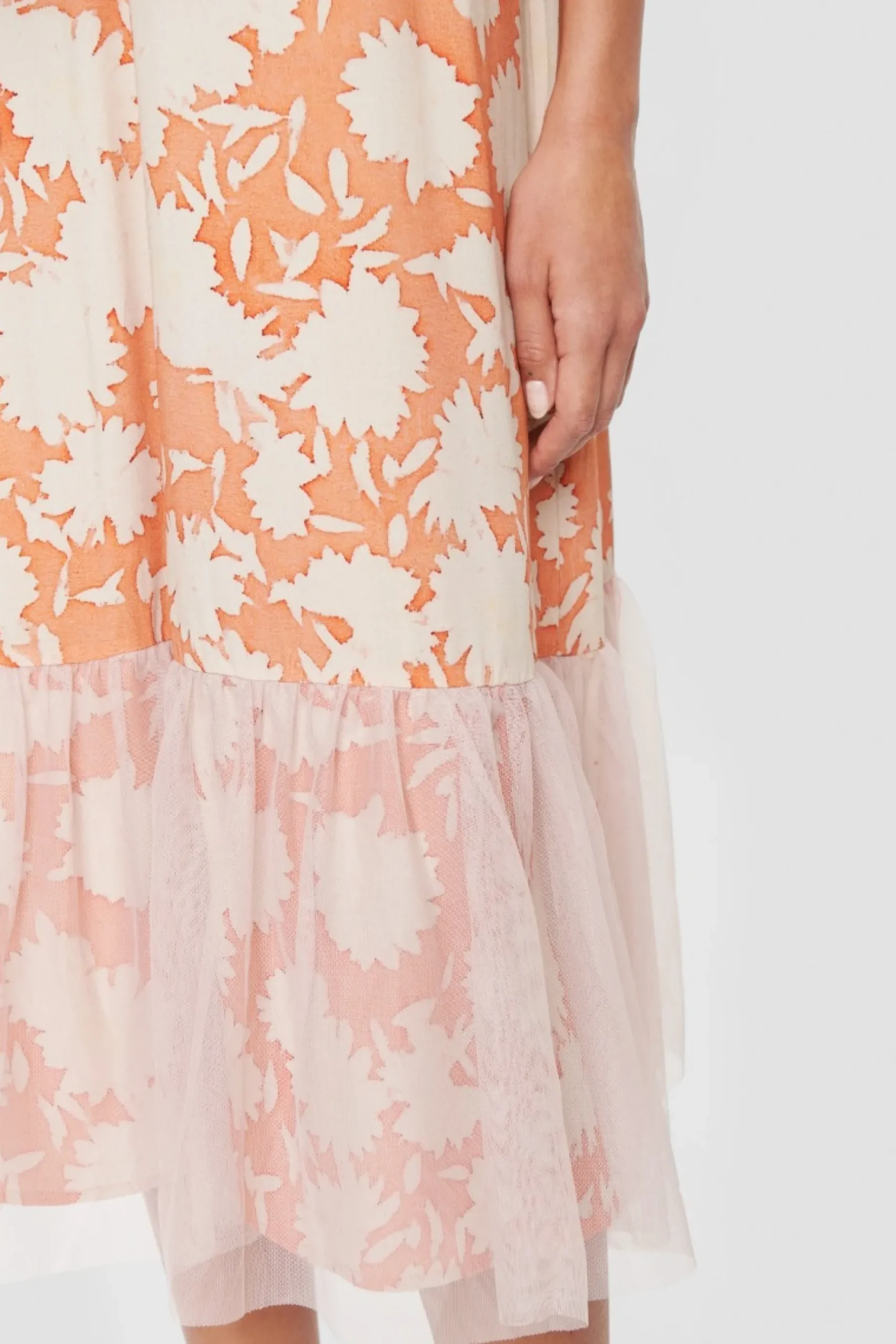 Der Er Fest Og Glade Dage Over Denne Sommerkjole. Det Transparente Lag Af Tyl Forneden Giver En Flot Effekt, Og Monsteret Er Sa Stilfuldt Og Sommerligt. Brug Kjolen Til At Opgradere Hverdagsstilen, Eller Saet Et Par Hoje Haele Til, Og Du Er Klar Til En Middag I Byen.