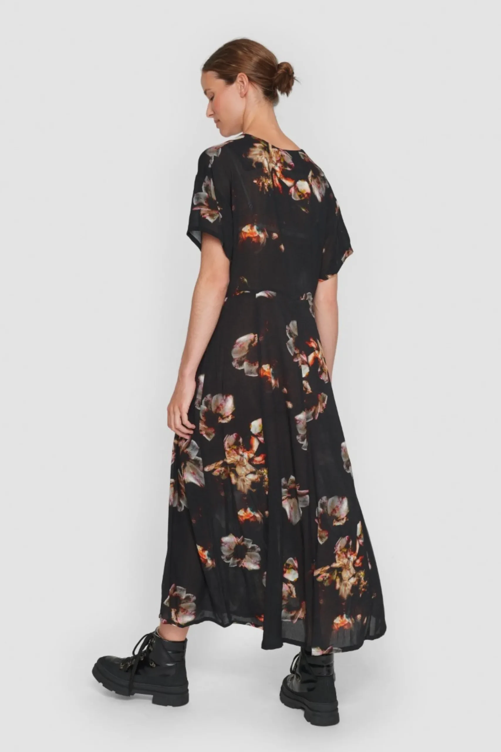 Kjole Med Abstrakt Blomsterprint I Fine Nuancer Og Et Helt Enkelt Og Klaedeligt Snit, Der Falder Flot Om Kroppen. En Kjole, Som Kan Bruges Til Hverdag Og Fest. Saet Ballerinaer Til, Der Rammer En Af Nuancerne I Monsteret, Eller Kombiner Med Herresko Og Flotte Oreringe.
