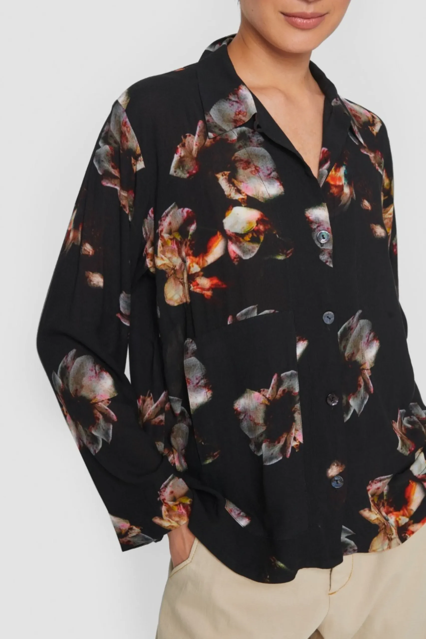 Skjorte Med Et Helt Enkelt Og Klaedeligt Snit Og Et Abstrakt Blomsterprint I Fine Nuancer, Som Vil Live Op Bade Til Hverdag Og Fest. Skjorten Er Oplagt At Bruge Til Et Par Sorte Herrebukser, Og Den Er Ogsa Flot Til Nederdel, Jeans Og Udenpa En Kjole.