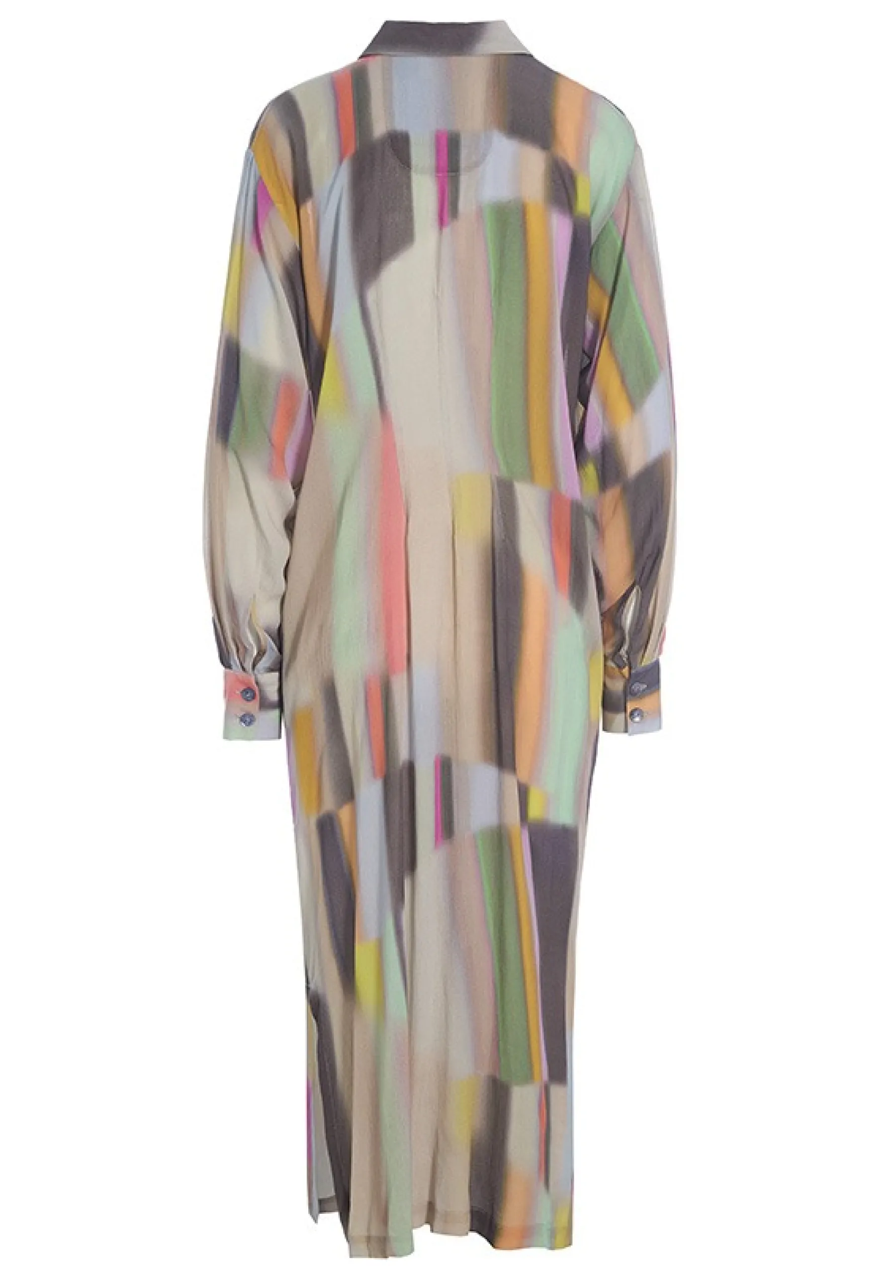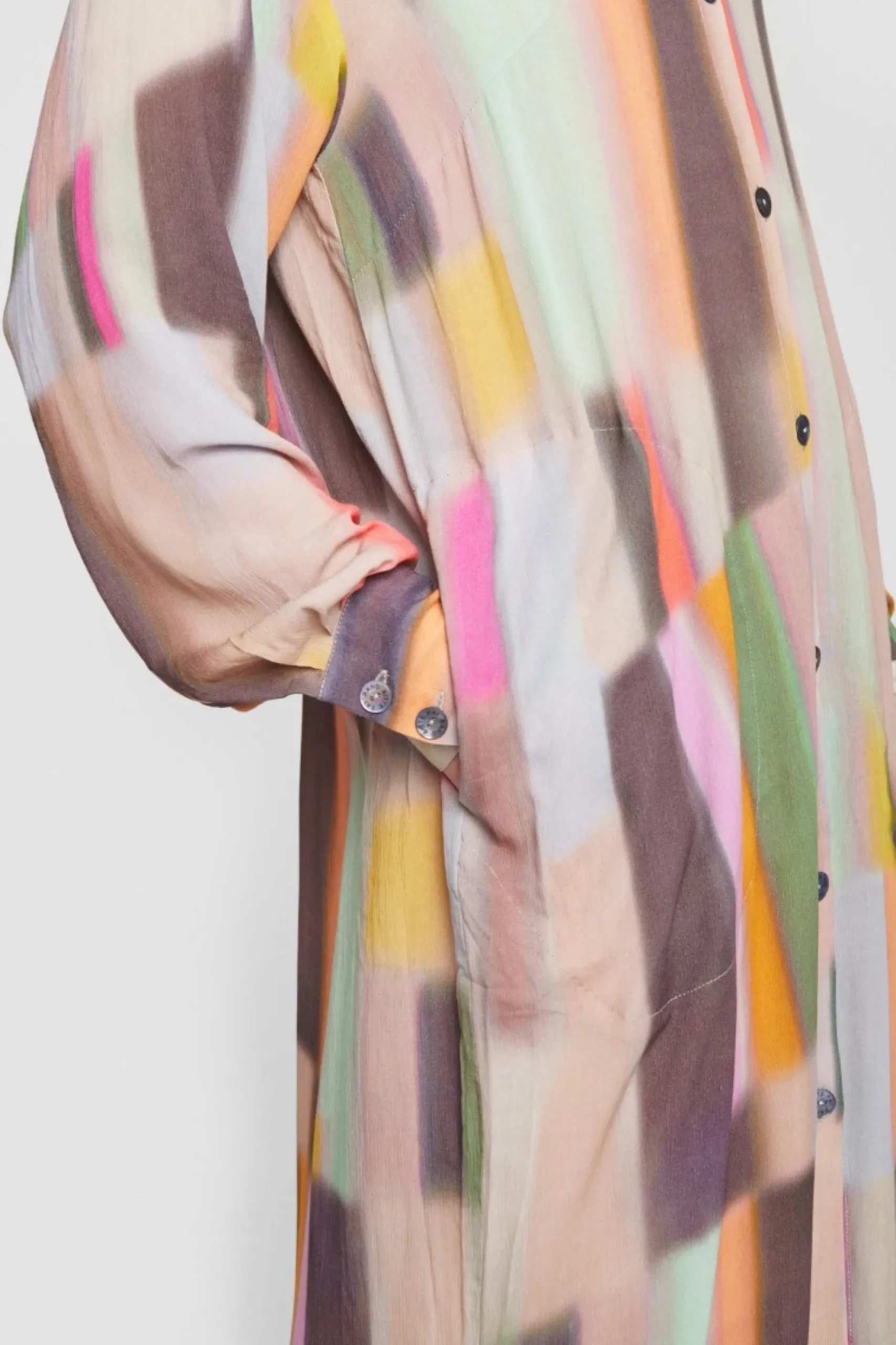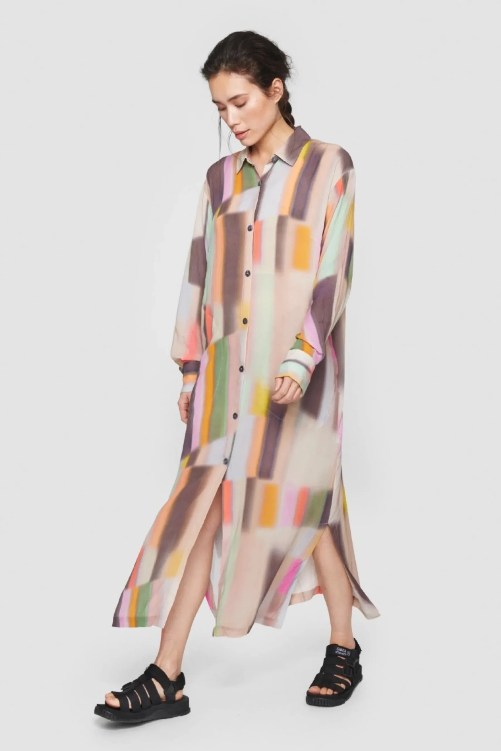 Lang Skjortekjole Med Et Farverigt Print, Der Gor Det Oplagt At Matche Med Jakker, Stromper, Sko Eller Tasker, Der Rammer En Af De Smukke Nuancer. Brug Kjolen Over Et Par Jeans Eller Brede Bukser Og Pa Varme Dage Alene, Kun Tilsat Flade Sandaler.