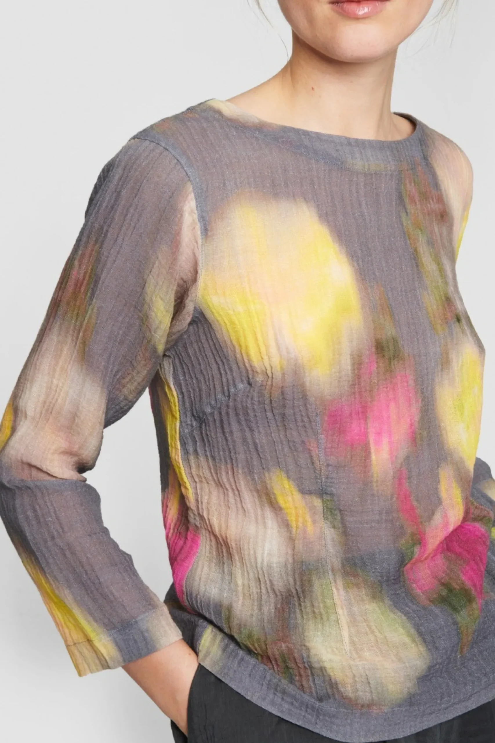 Bluse Med Super Enkelt Snit Og Et Abstrakt Blomstermonster, Der Inviterer Til Monstermiks Med Underdele I Mange Forskellige Farver. Det Er Ogsa Oplagt At Lade Blusen Give Et Par Basisbukser Eller Shorts En Personlig Drejning. Eller Brug Den Under Kjolen Pa Kolige Dage.