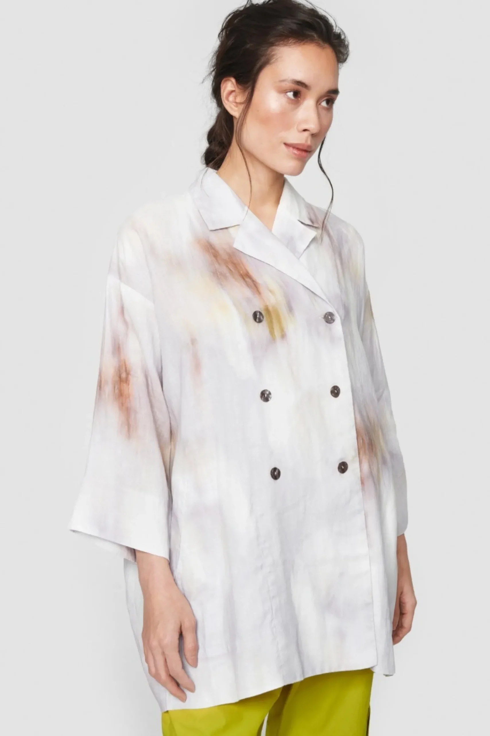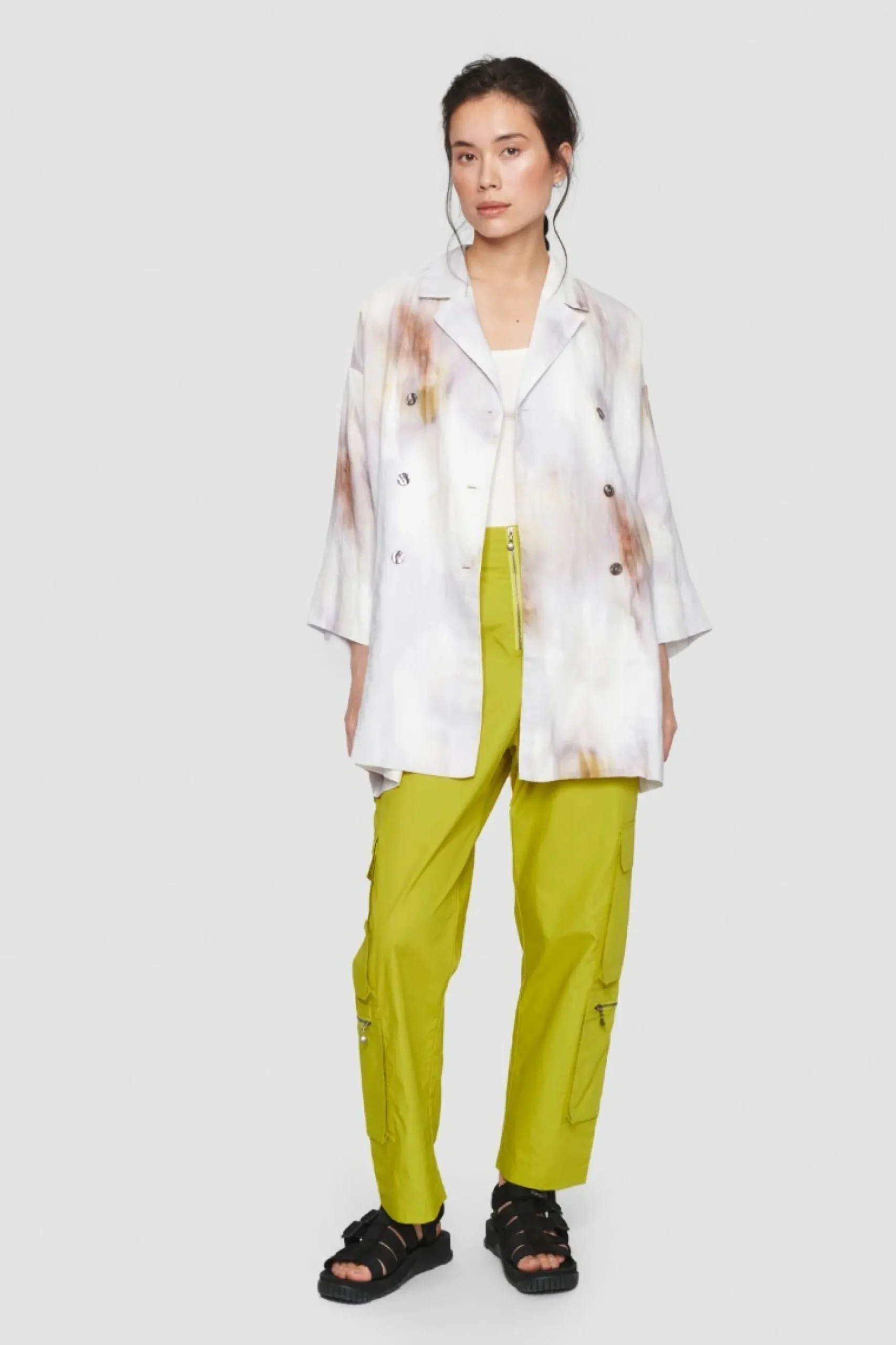 Sommerlig Jakke Med Et Drommende Douche Monster. Jakken Er Lostsiddende Og Har En Klaedelig Laengde. Den Er Perfekt Til At Gore Et Basissaet Laekkert Og Personligt. Brug Den Over Jeans, En Nederdel, Eller Saet De Matchende Blurry Bloom Bukser Til.
