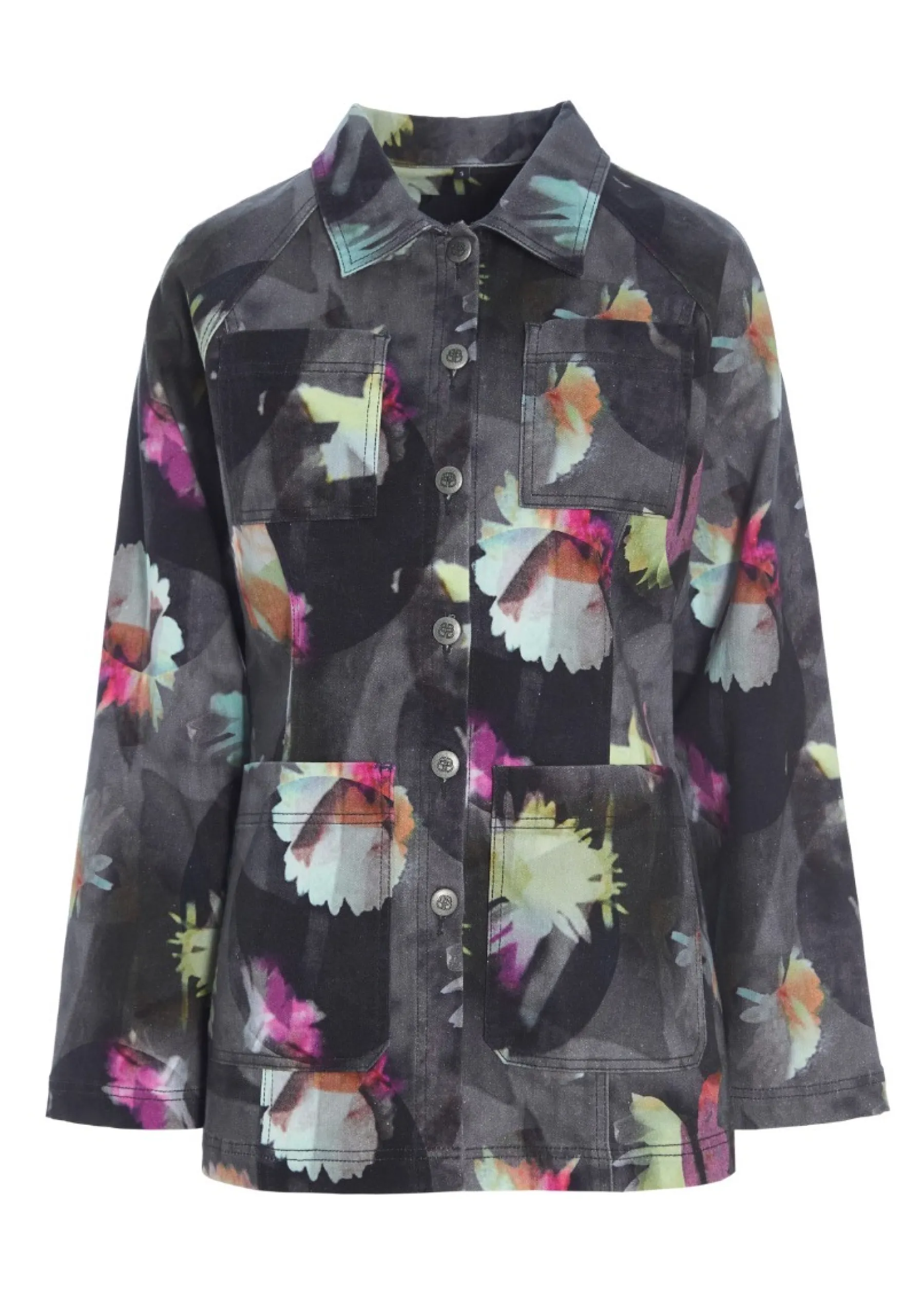 Lad Det Abstrakte Blomstermotiv, Der Pryder Denne Jakke Vaere Et Smukt Farveindslag I Din Basisgarderobe. Brug Jakken Til Et Ensfarvet Saet. Den Er Ogsa Flot Til De Matchende Cirque De Fleurs Jeans, Og Ogsa Helt Almindelige Jeans Far En Opgradering Med Denne Jakke.