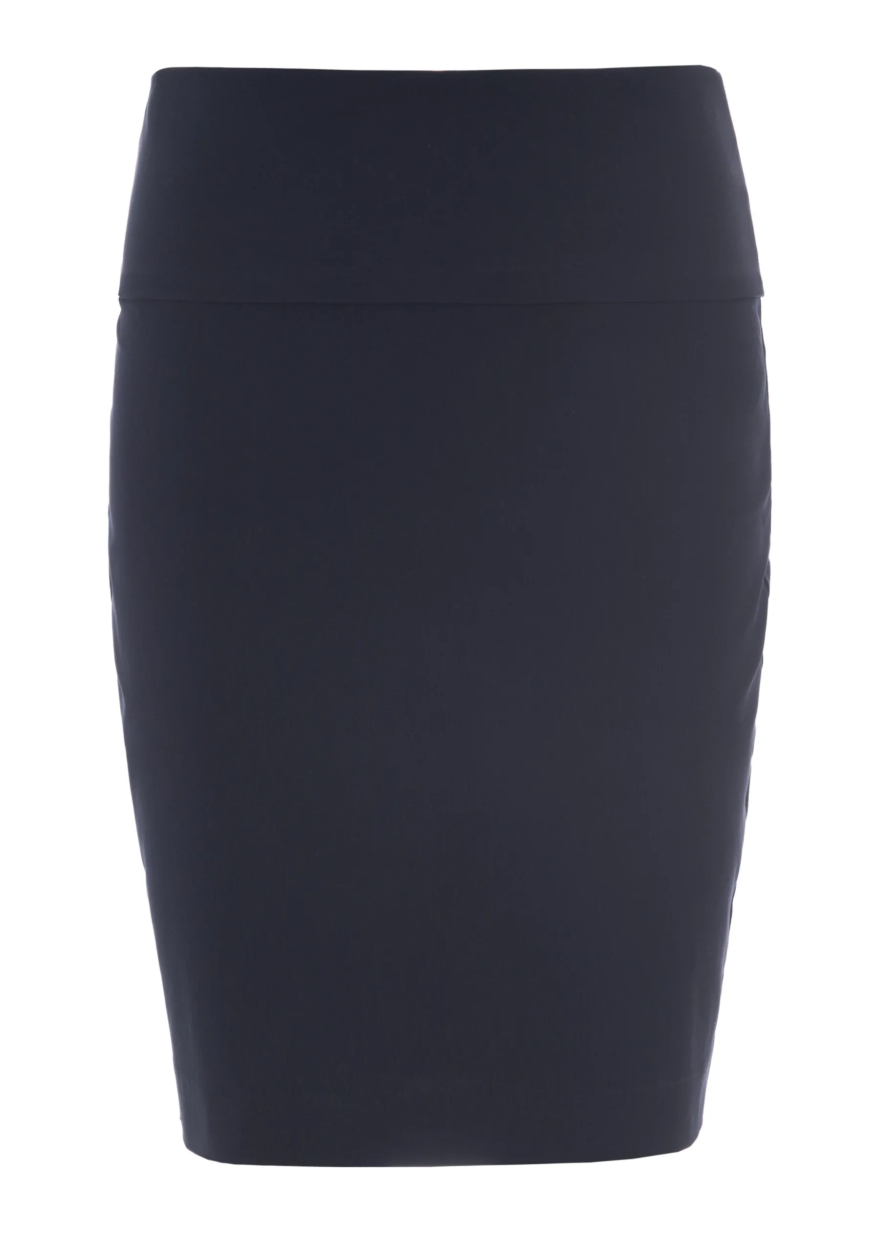 Basisnederdel Med Klaedelig Og Taetsiddende Pasform. Der Er Stretch I Nederdelen, Som Sikrer En God Bevaegelighed. Nederdelens Brede Linning Kan Traekkes Op Over Maven Eller Foldes Ned For En Almindelig Taljehojde. Denne Effekt Gor Den Meget Behagelig.