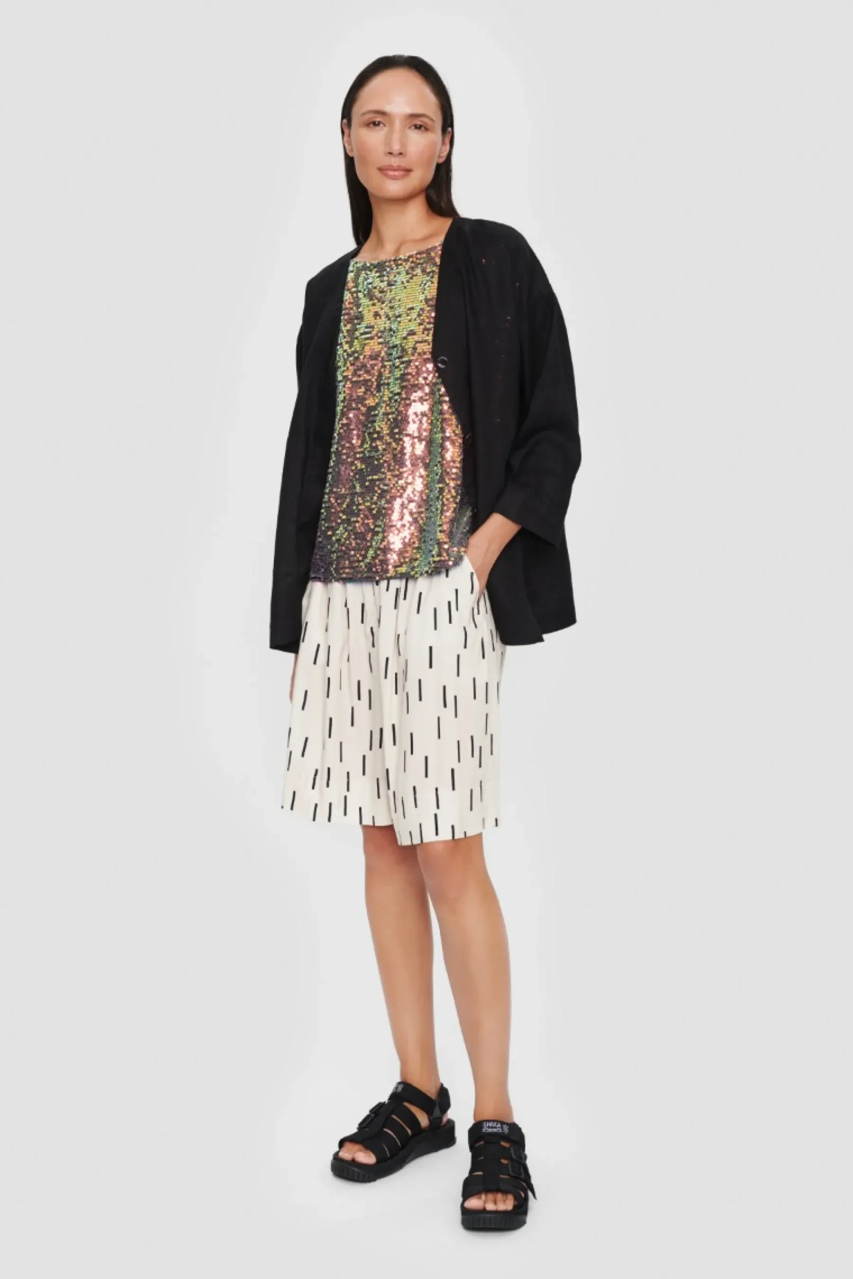 Drys Glimmer Pa Bade De Festlige Dage Og De Helt Almindelige Onsdage Med Denne Flotte Pailletbluse. Lige Sa Funklende Blusen Er, Lige Sa Enkelt Er Snittet. Brug Den Til At Opgradere Jeans Og Sneakers, Eller Ga Den Festlige Vej, Og Kombiner Med Nederdel Og Hoje Haele.