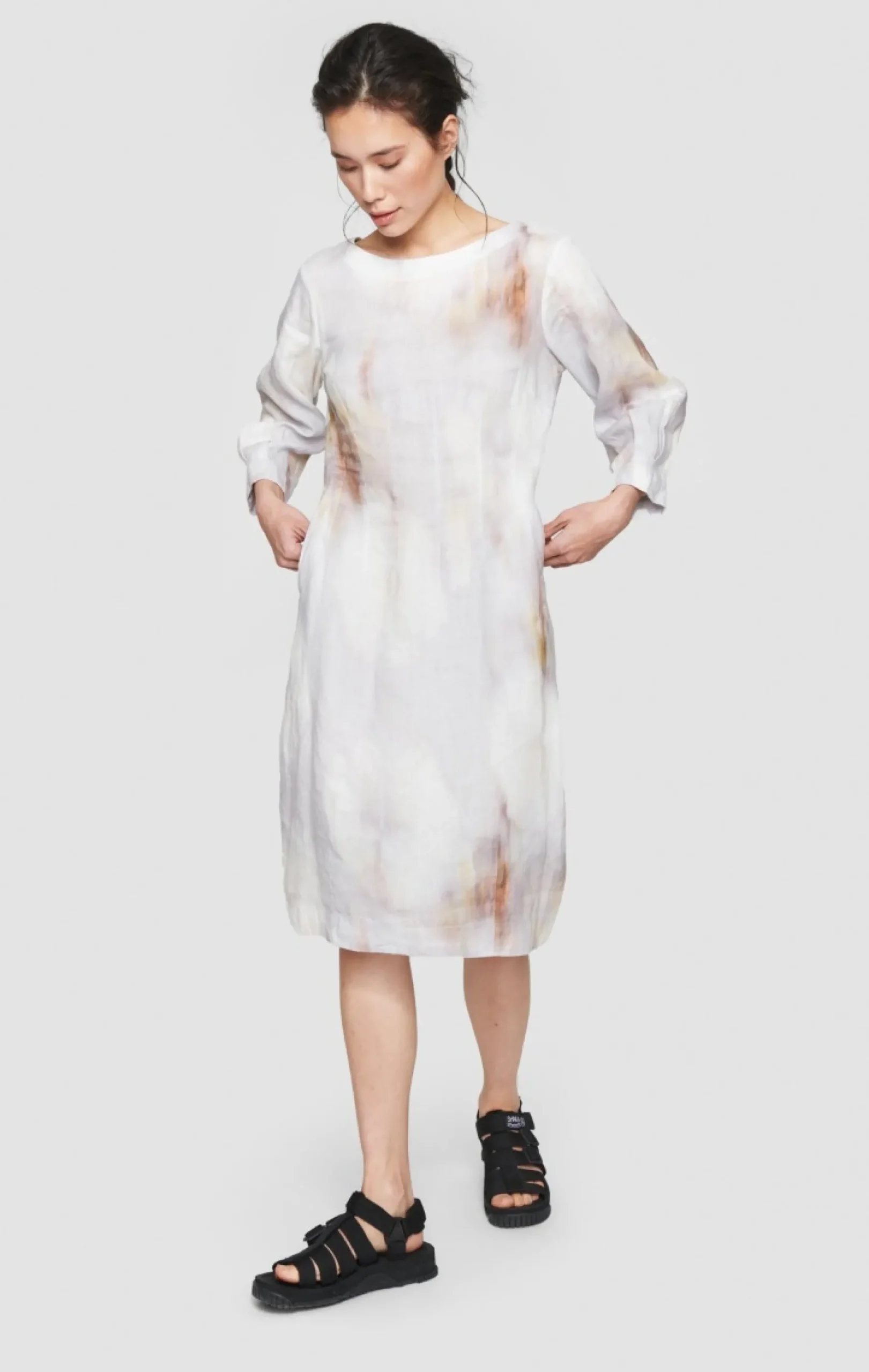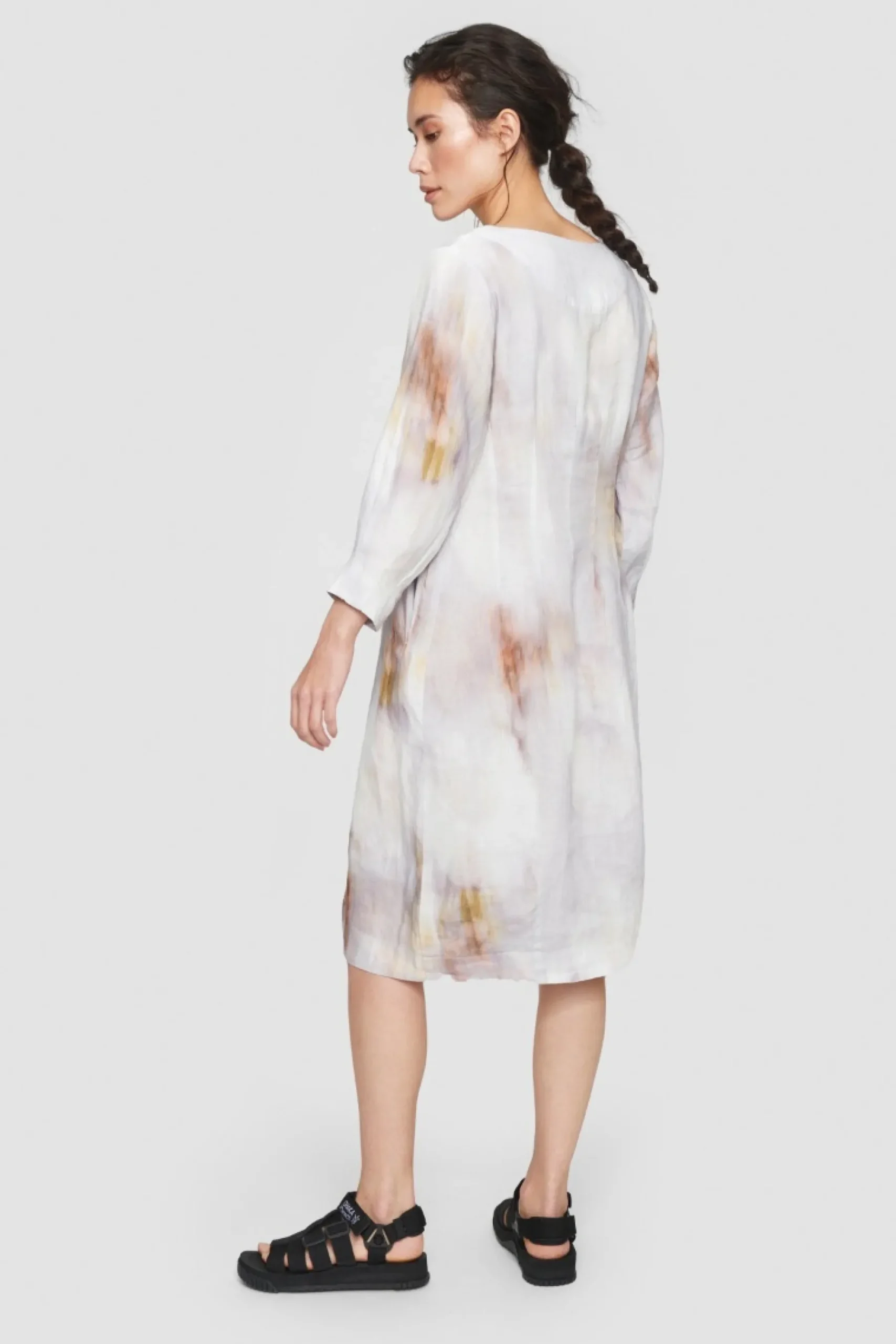 Kjole Med Drommende Douche Monster. Kjolen Er Taljeret Og Giver En Flot Og Feminin Silhouette. Det Er En Kjole, Som Er Oplagt At Bruge Til Hverdag, Blot Tilsat Bare Ben Og Sandaler. Kjolen Er Ogsa Fin Med Et Par Lose Bukser Under I En Matchende Nuance.