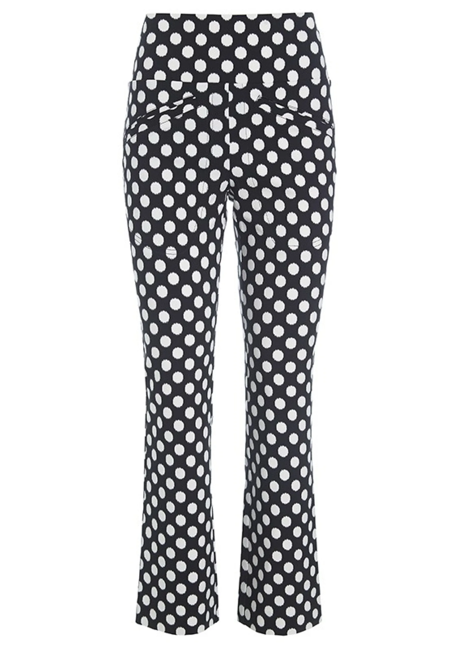Bukser, Let Stumpende Med Muntre Prikker. Den Brede Linning Kan Traekkes Op Over Maven Eller Foldes Ned For En Almindelig Taljehojde. Denne Effekt Gor Bukserne Meget Behagelige. Der Er Stretch I Stoffet, Hvilket Sikrer En God Bevaegelighed.