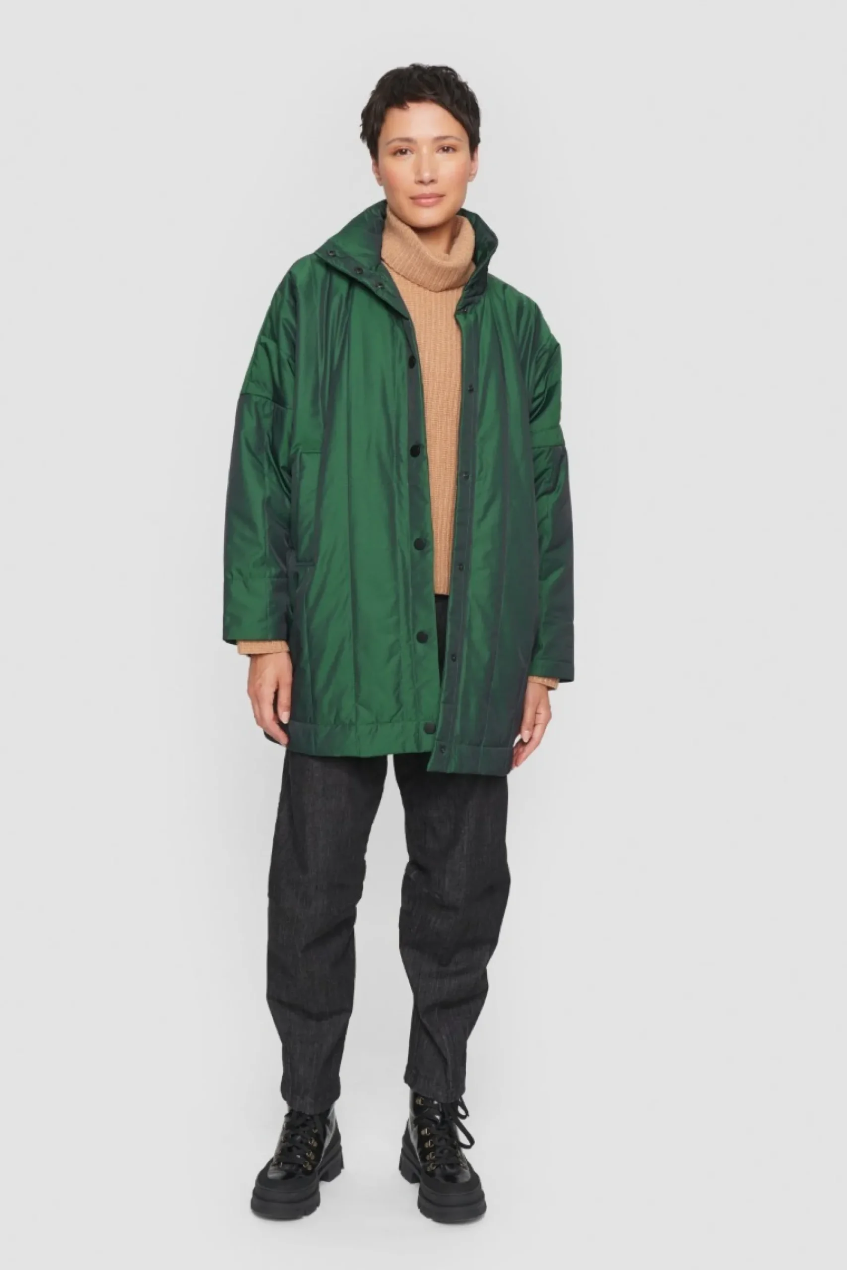 Denne Lune Jakke Et Sa Smukt Udformet, At Den Vender Nodvenligheden Af Godt Overtoj Til Ren Fornojelse. Den Changerende Overflade Giver Et Luksuriost Udtryk. Der Er Masser Af Volumen I Frakken, Som Kan Knappes Op I Siderne, Sa Den Er God At Cykle I.