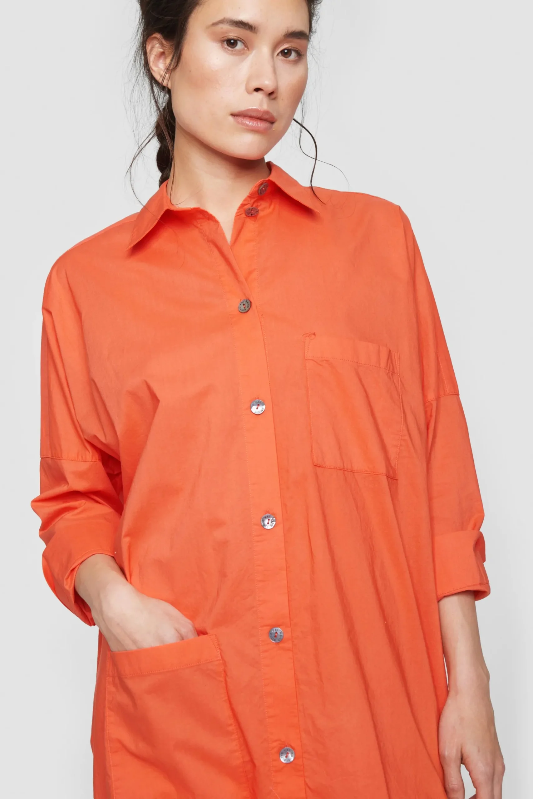 Skjortekjole I Knitrende Laekker Bomuldskvalitet. Et Basiselement Der Kan Anvendes Pa Rigtig Mange Mader. Brug Skjortekjolen Over Et Par Jeans Eller Brede Bukser Og Pa Varme Dage Alene, Kun Tilsat Flade Sandaler.