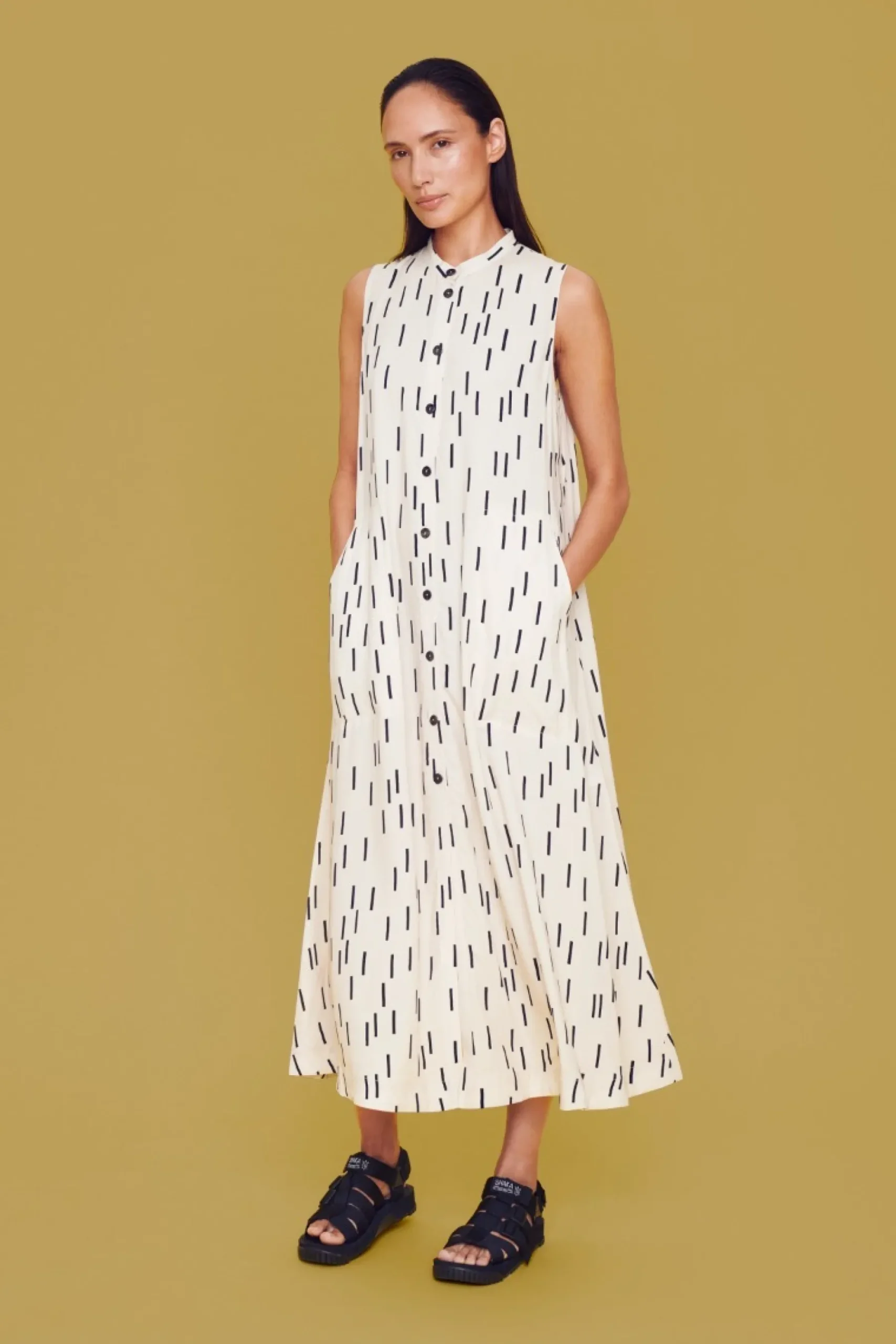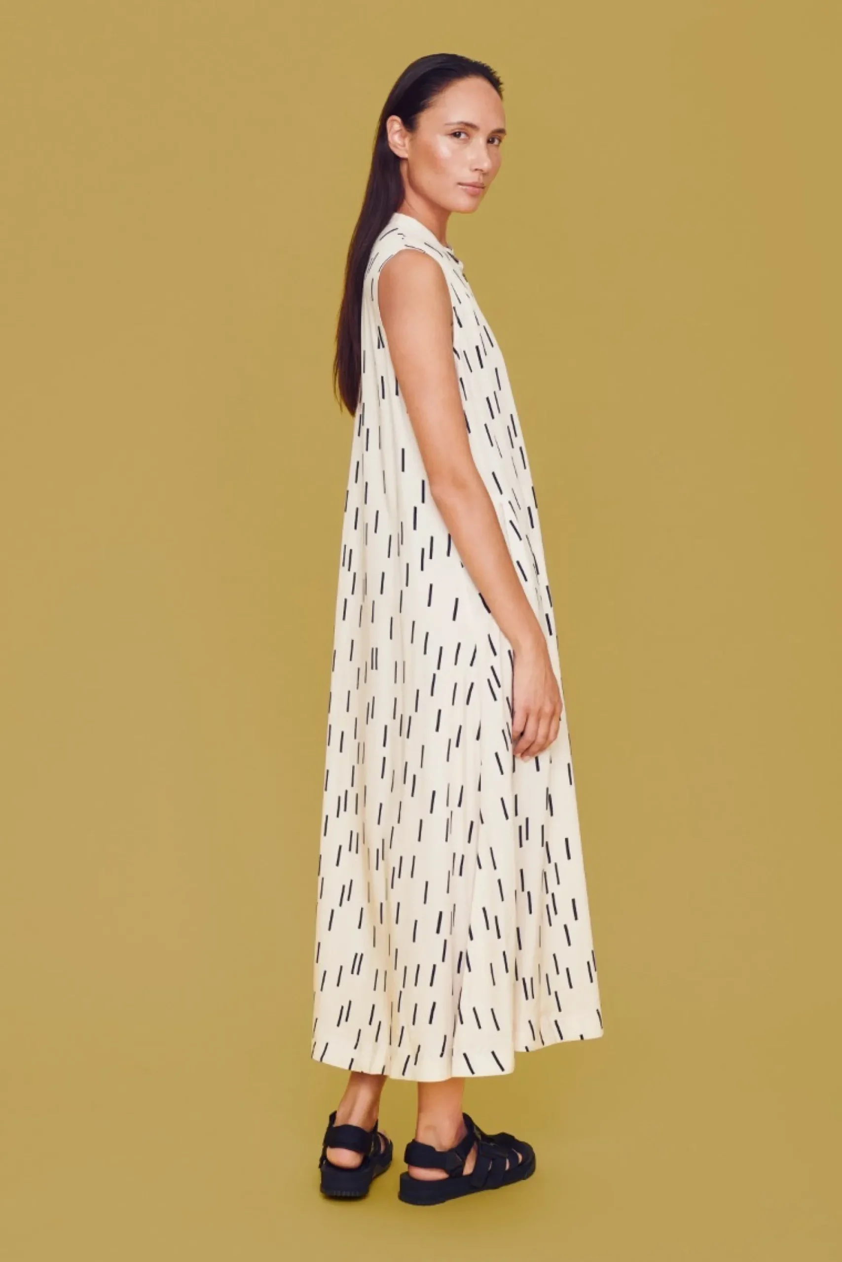 Super Enkel Kjole Med Et Snit, Der Giver En Lang, Smuk Silhuet. Kjolen Er Forsynet Med Et Stilfuldt Og Sommerligt Monster. Brug Den Med Eller Uden Bluse Under. Saet Et Par Smukke Sandaler, Solbriller Og En Flot Taske Til – Sa Er Du Klar Til Det Sode Sommerliv.