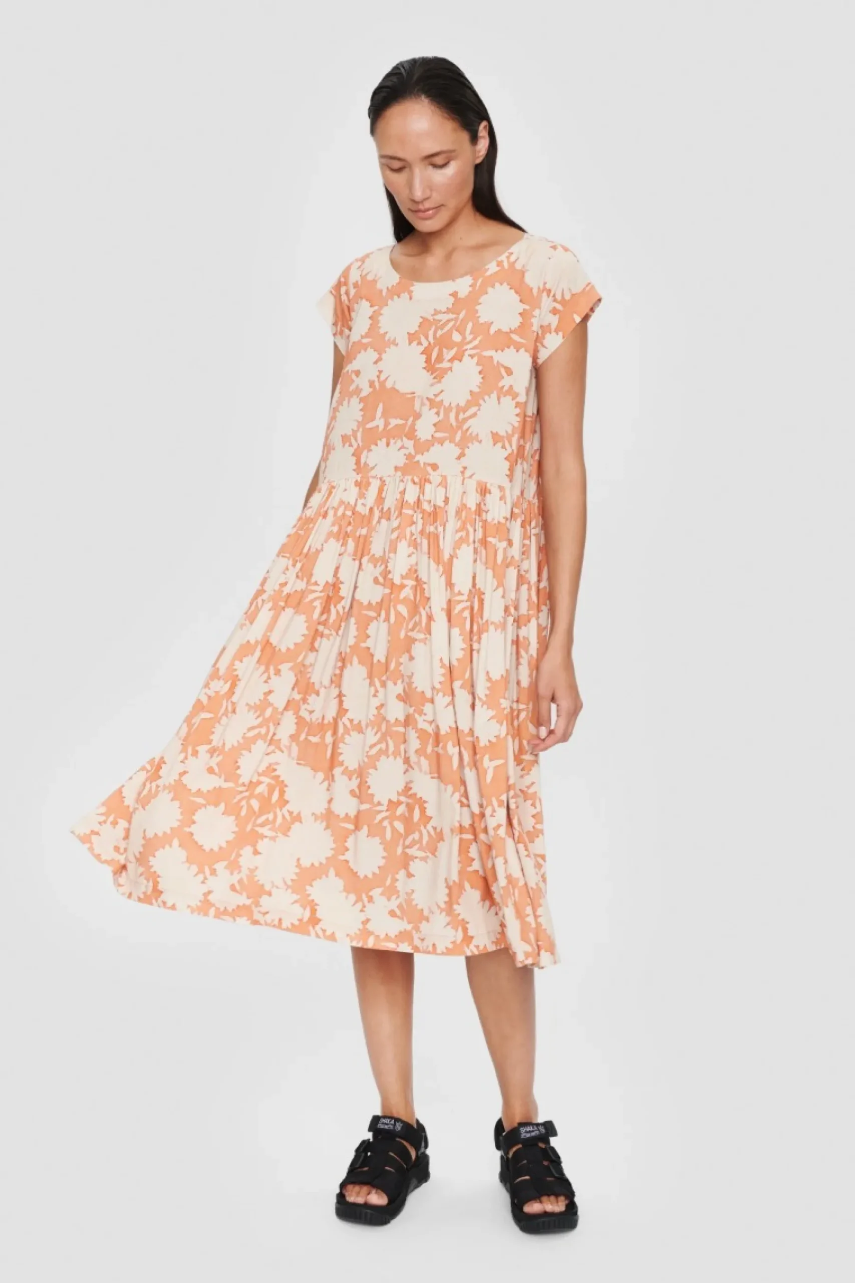 Super Enkel Kjole Med Rummelig Pasform. Kjolen Er Forsynet Med Et Stilfuldt Og Sommerligt Monster, Og Den Kraever Ikke Andet End Et Par Smukke Sandaler, Solbriller Og En Flot Taske – Sa Er Du Klar Til Det Sode Sommerliv.
