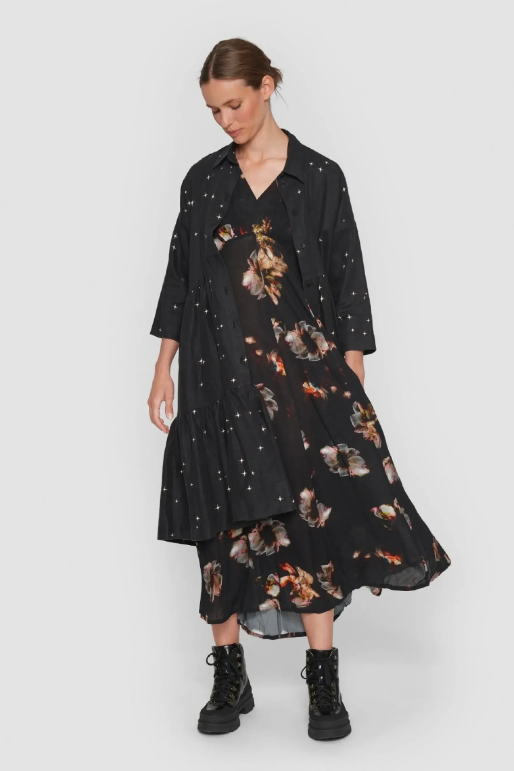 Kjole Med Abstrakt Blomsterprint I Fine Nuancer Og Et Helt Enkelt Og Klaedeligt Snit, Der Falder Flot Om Kroppen. En Kjole, Som Kan Bruges Til Hverdag Og Fest. Saet Ballerinaer Til, Der Rammer En Af Nuancerne I Monsteret, Eller Kombiner Med Herresko Og Flotte Oreringe.