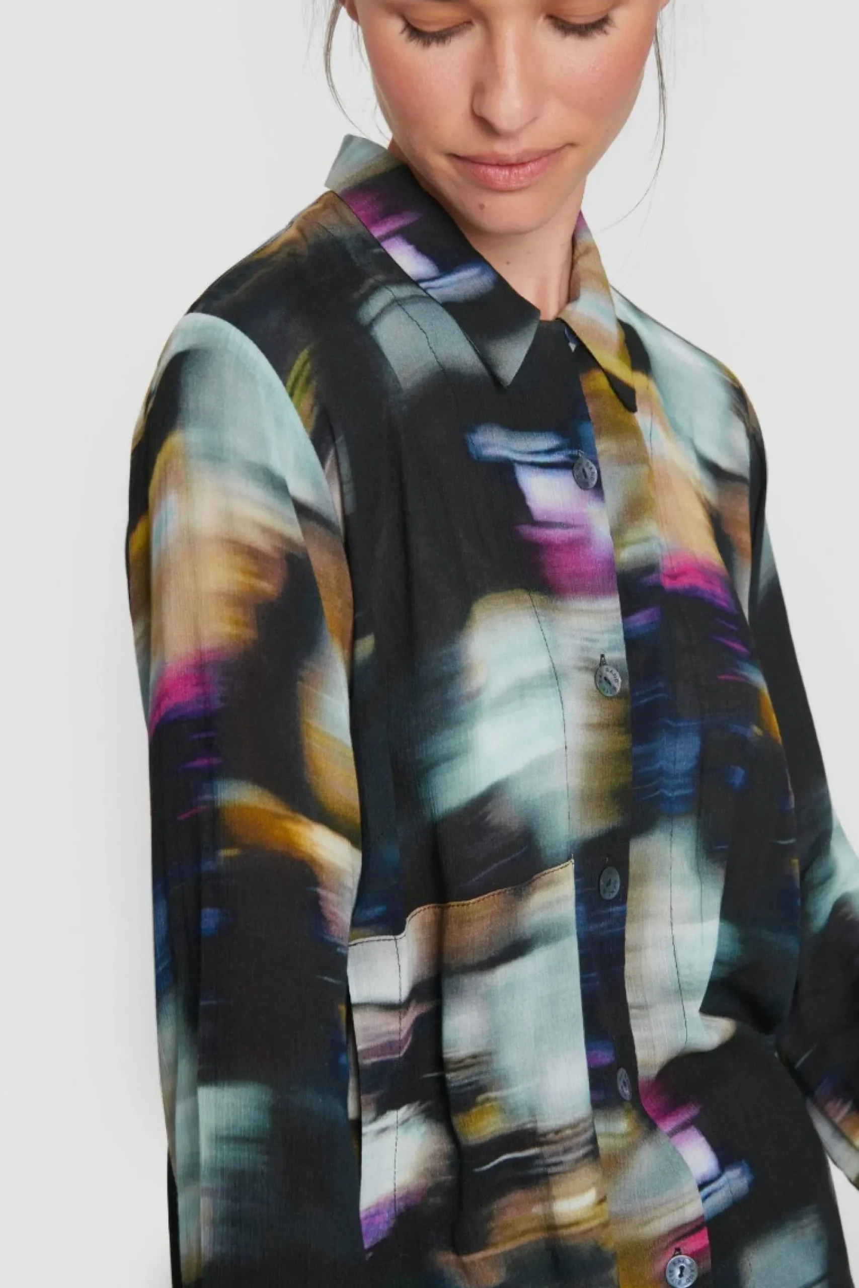 Med Et Print Inspireret Af Byens Lokkende Lys Er Denne Skjorte En Flot Og Farvestralende Tilfojelse Til Garderoben. Snittet Er Helt Enkelt Og Gor Skjorten Anvendelig Til Enhver Underdel. Brug Den Med Nederdel, Lose Bukser Eller Dine Yndlingsjeans.