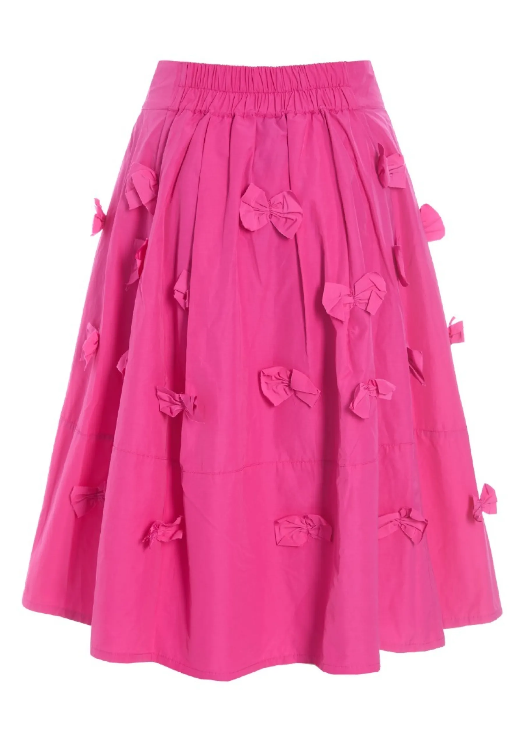 En Velsiddende Og Klaedelig Nederdel, Som Har Sma Slojfer Stroet Ud Over Skortet, Hvilket Gor Den Til Noget Helt Saerligt. Kombiner Nederdelen Med En Enkel Bluse Eller Skjorte. Og Saet Sa Ballerinaer, Herresko Eller Hoje Haele Til Alt Efter, Hvor Festligt, Det Skal Vaere.