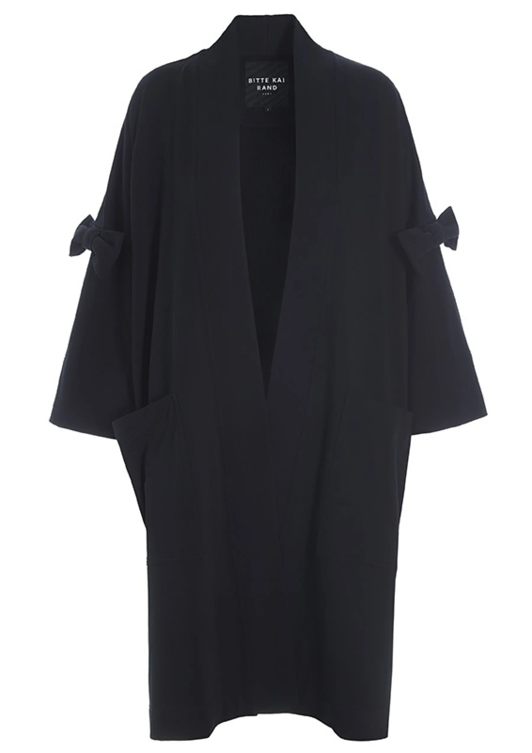 Tag Denne Abentstaende Jakke Med Fine Slojfedetaljer Udover Ethvert Basissaet, Og Det Opgraderes Til Et Elegant Og Personligt Outfit. Jakken Danner En Smuk Ramme Om Kroppen Og Giver Flotte Lange Linjer.