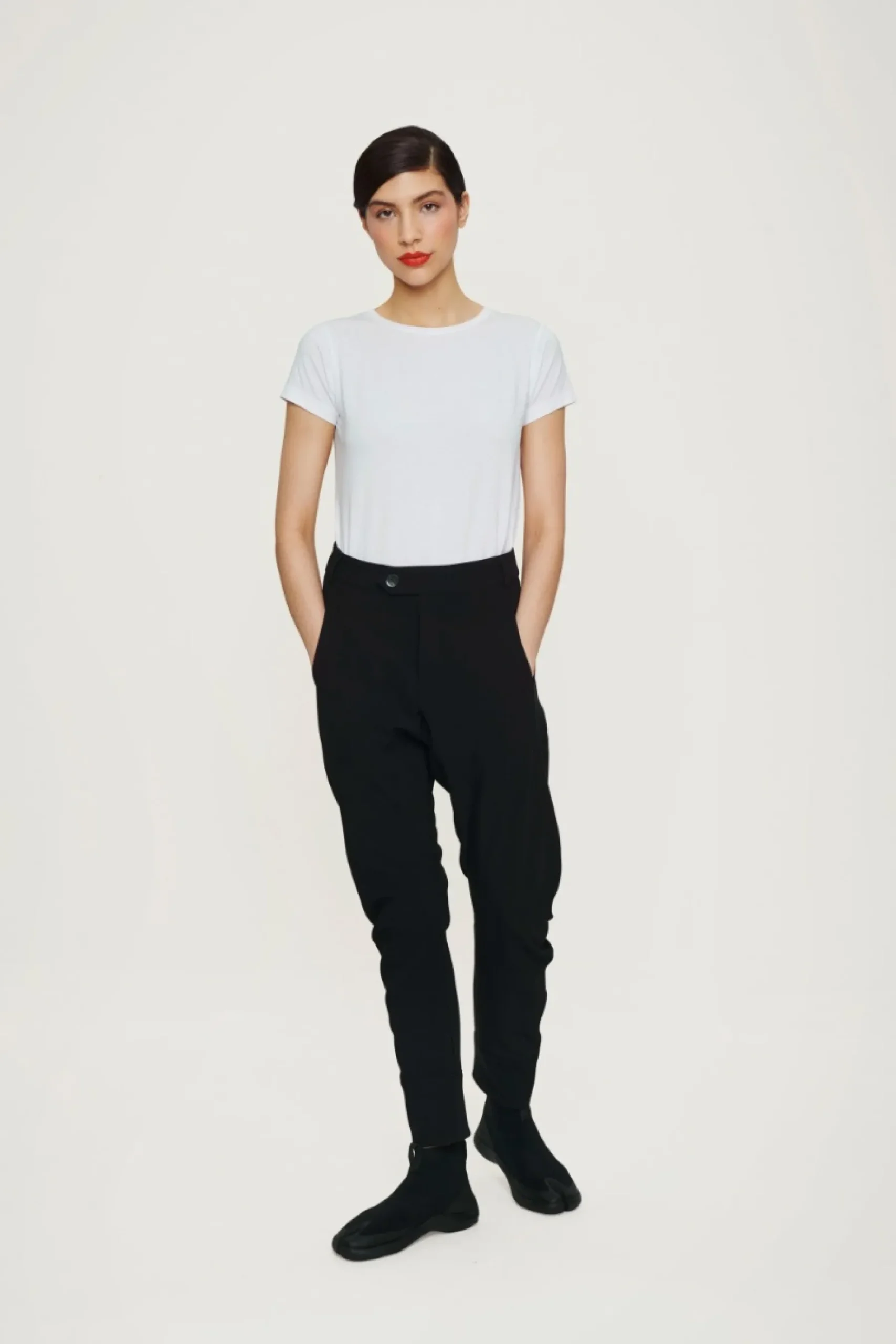 Cool Og Velsiddende Bukser I En Laekker Blod Kvalitet. De Har En Let Posende Pasform Og Er Perfekte Til At Gore En Klassisk Blazer Eller Top Mere Casual. Ogsa Flotte Sammen Med En Enkel T-Shirt Eller En Knitrende Hvid Skjorte.