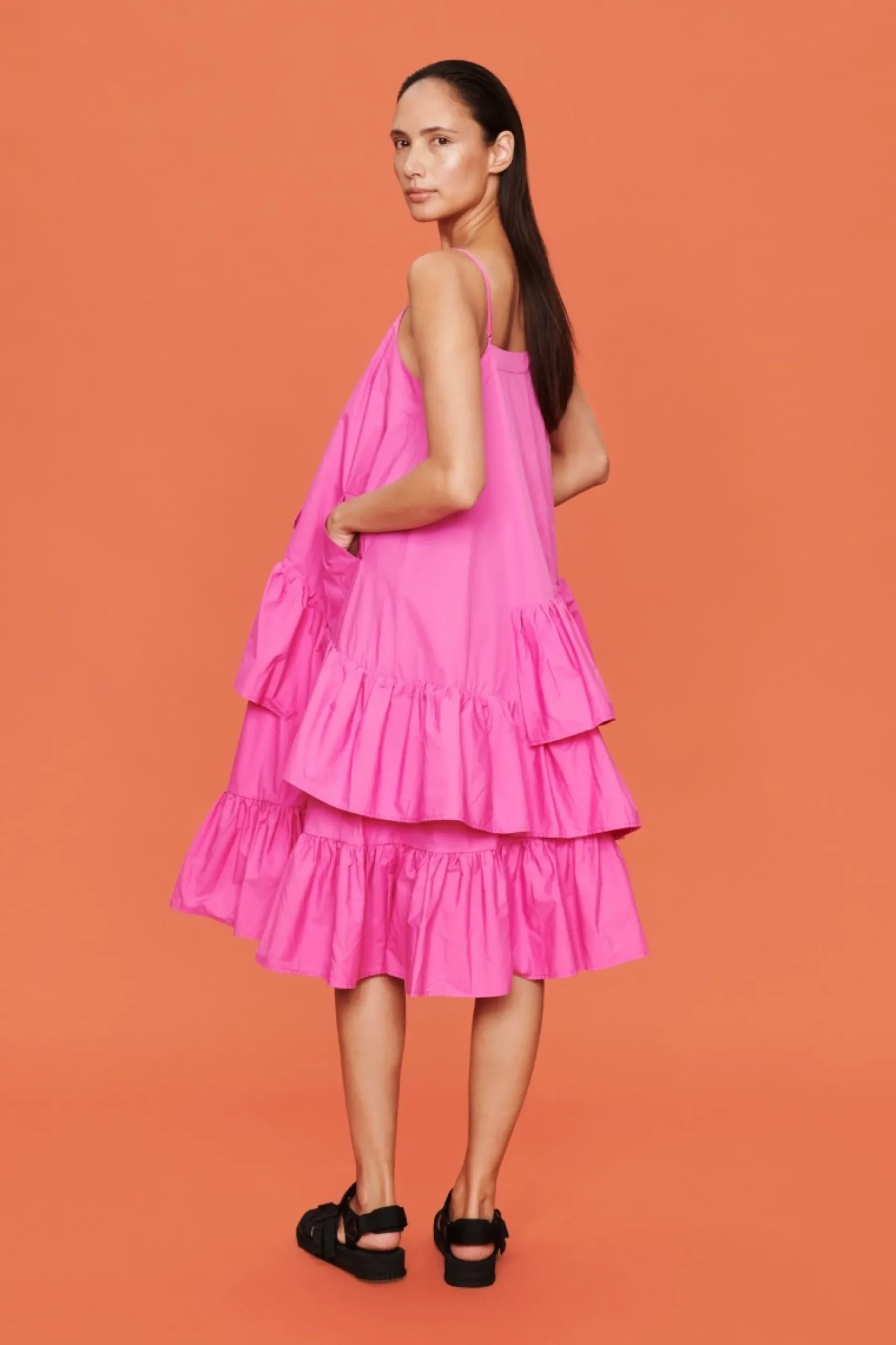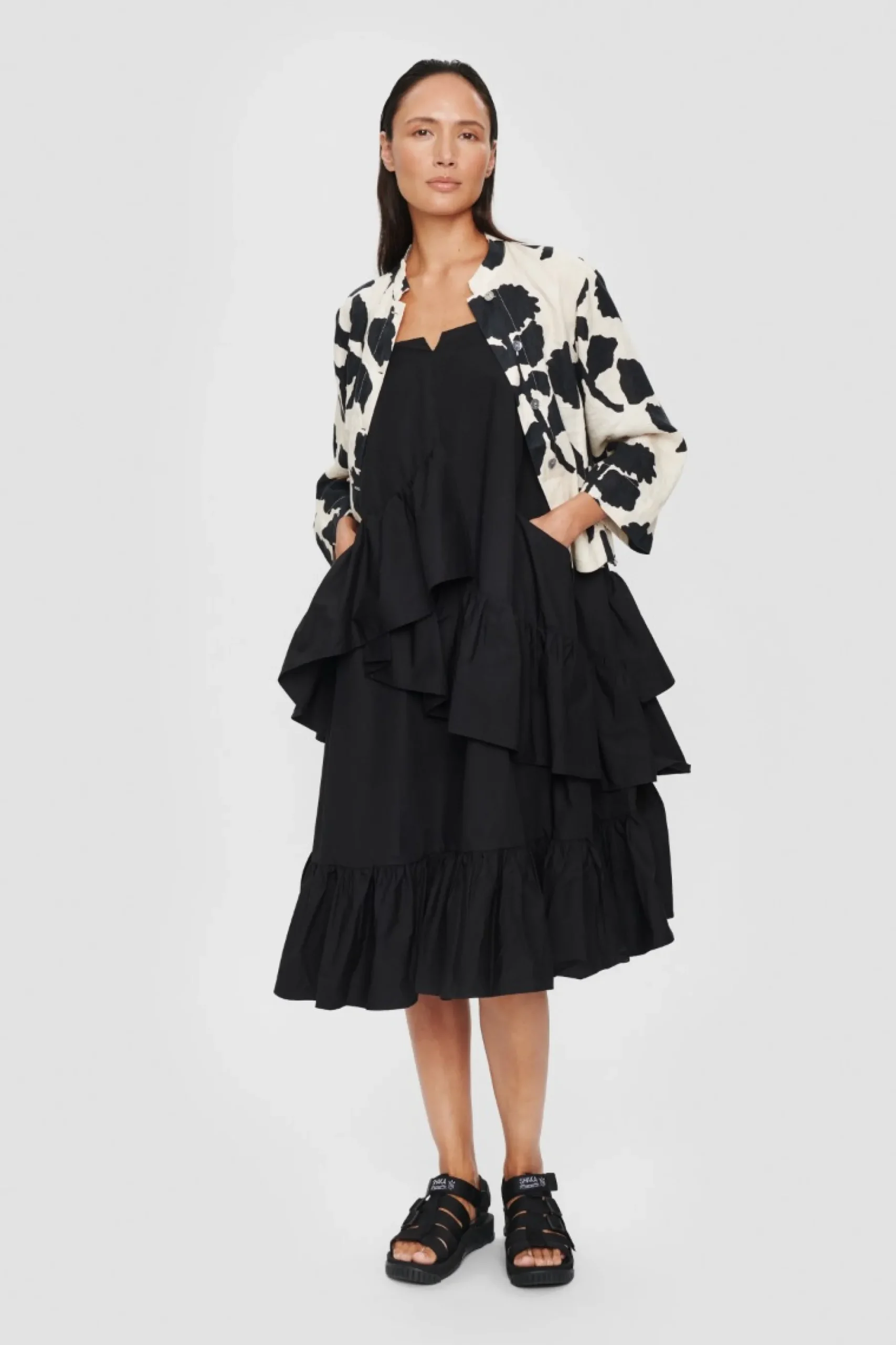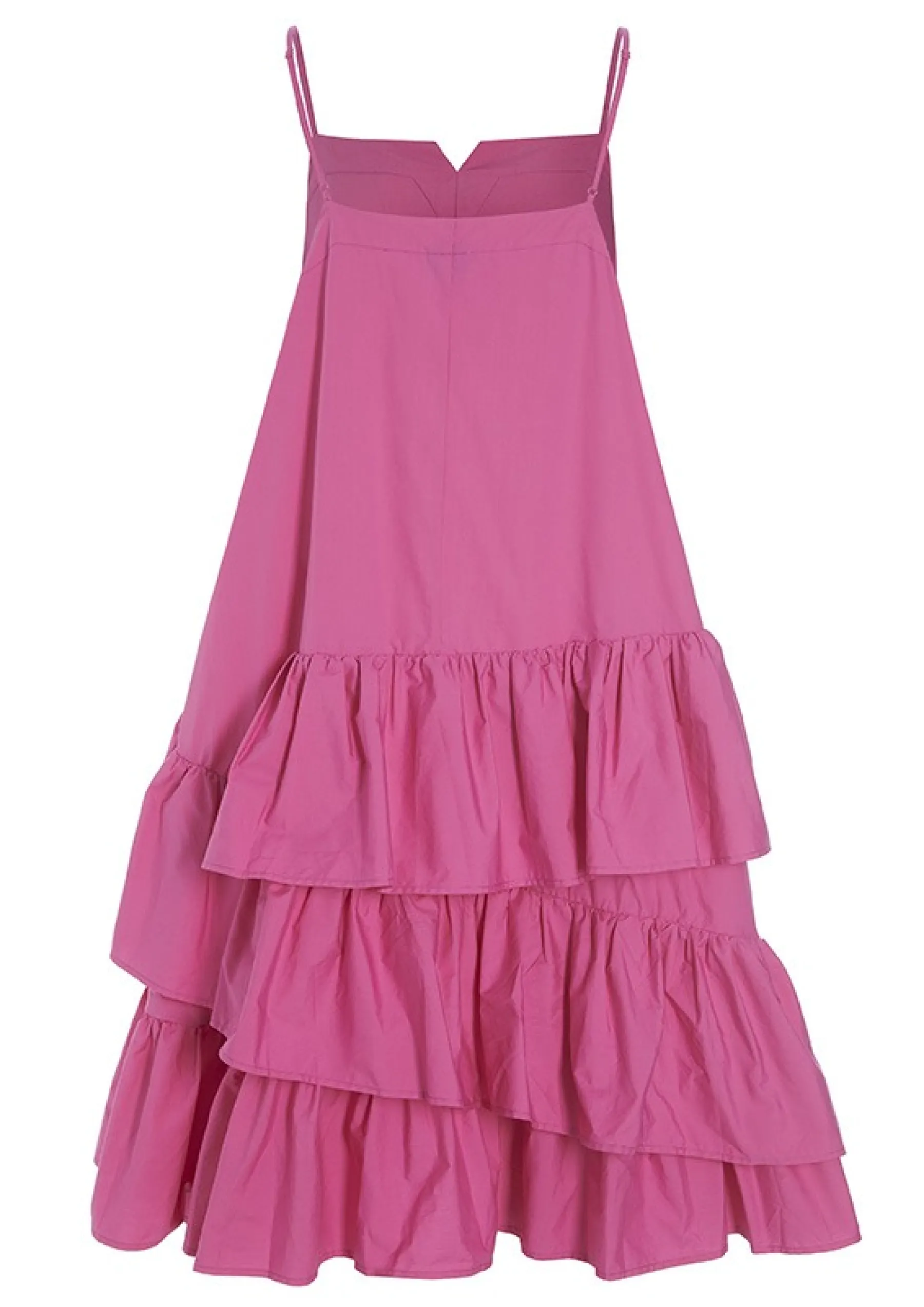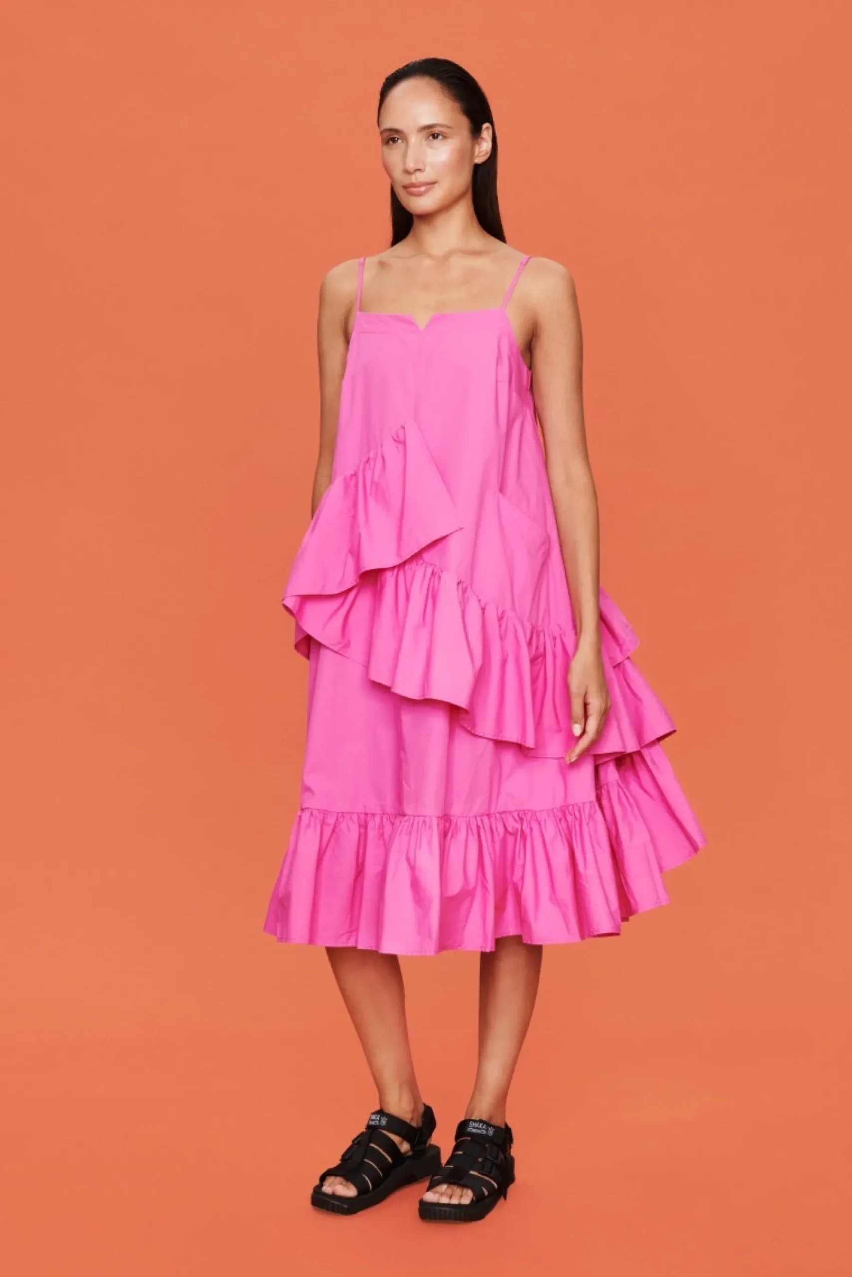 Der Er Fest Og Glade Sommerdage Over Denne Kjole. Flaeserne Snor Sig I En Spiral Ned Ad Skortet Og Giver En Flot Volumen. Du Behover Ikke Saette Andet Til En Et Par Cool Solbriller Og Yndlingssandalerne, Sa Er Du Klaedt Pa Til Det Sode Sommerliv.