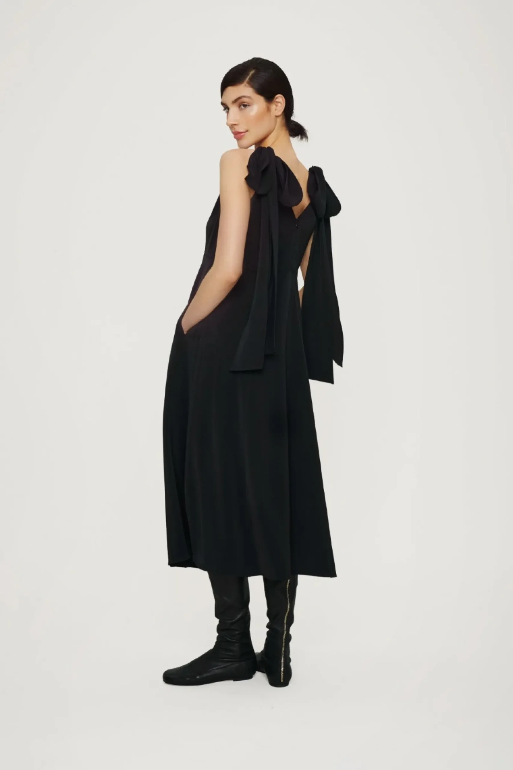 Denne Kjole Er Utrolig Smuk Og Elegant. Bindebandene, Der Falder Skodeslost Ned Langs Kroppen, Er Med Til At Understrege Kjolens Lange Linjer. Det Er Oplagt At Bruge Den Med Bare Arme. Men Kjolen Er Ogsa Flot Med En Taetsiddende Bluse Eller Rullekravetop Under.