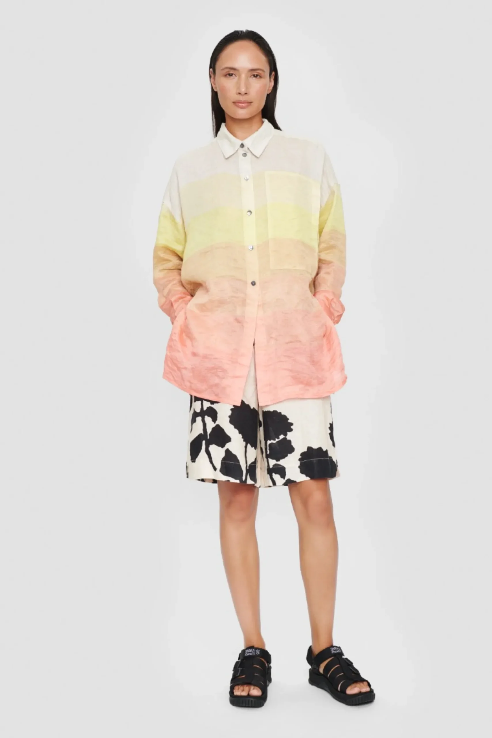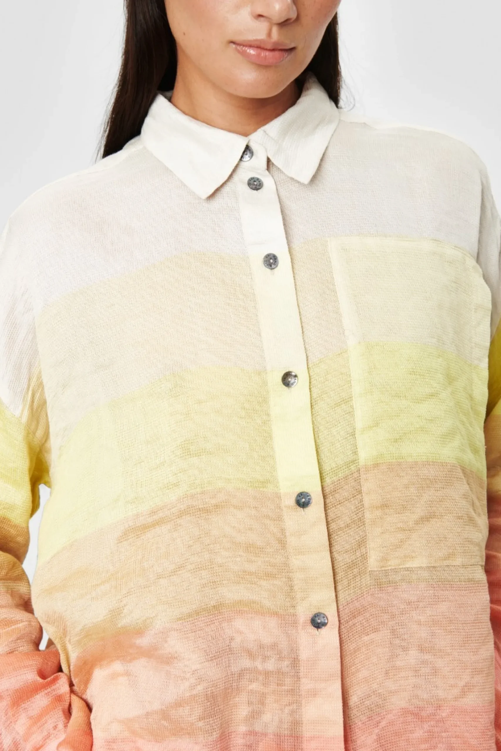 Skjorte Der Byder Pa Smukt Afstemte Regnbuefarver. Skjorten Har En Rummelig Pasform Og Et Klassisk Snit, Og Den Vil Se Vidunderlig Ud Tilsat Bade Jeans, Lose Sommerbukser Og Shorts.
