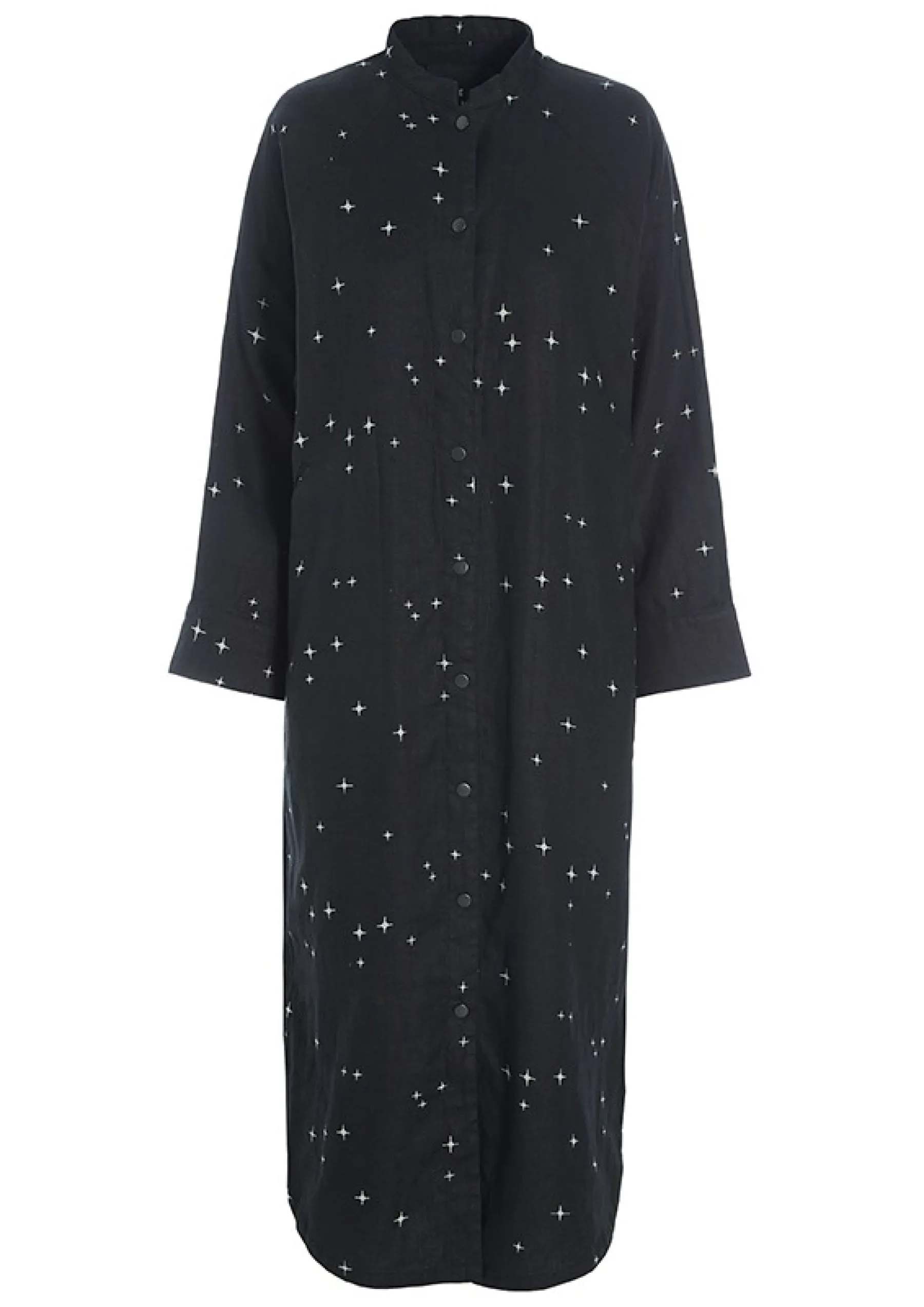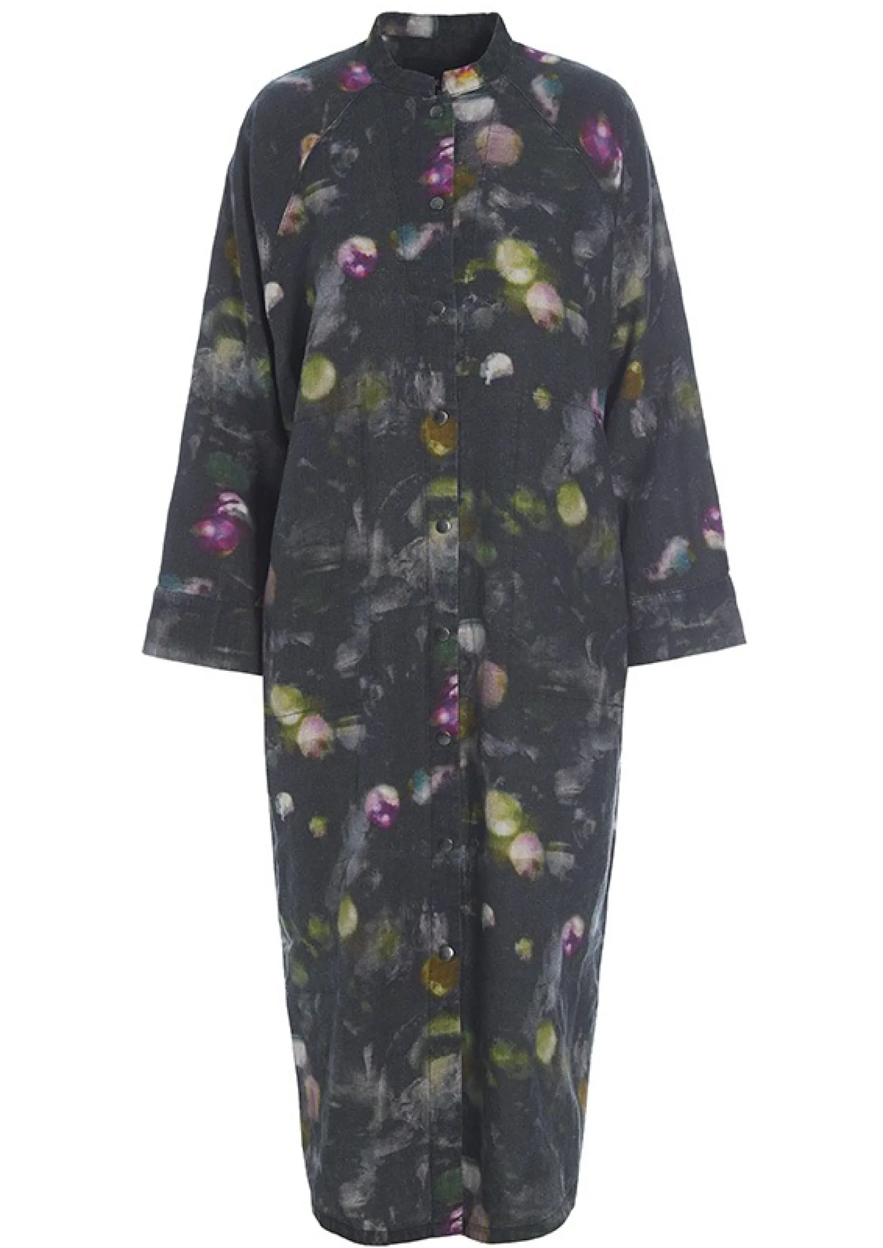 Med Et Print Inspireret Af Byens Lys Er Denne Skjortekjole Et Flot Indslag I Garderoben. Kjolen Har En Rummelig Pasform Og Et Enkelt Snit, Der Gor Den Meget Anvendelig. Saet Et Par Flade Snoresko Og En Jakke Til. Eller Oplev Selv Byens Lys I Kjolen Tilsat Hoje Haele.